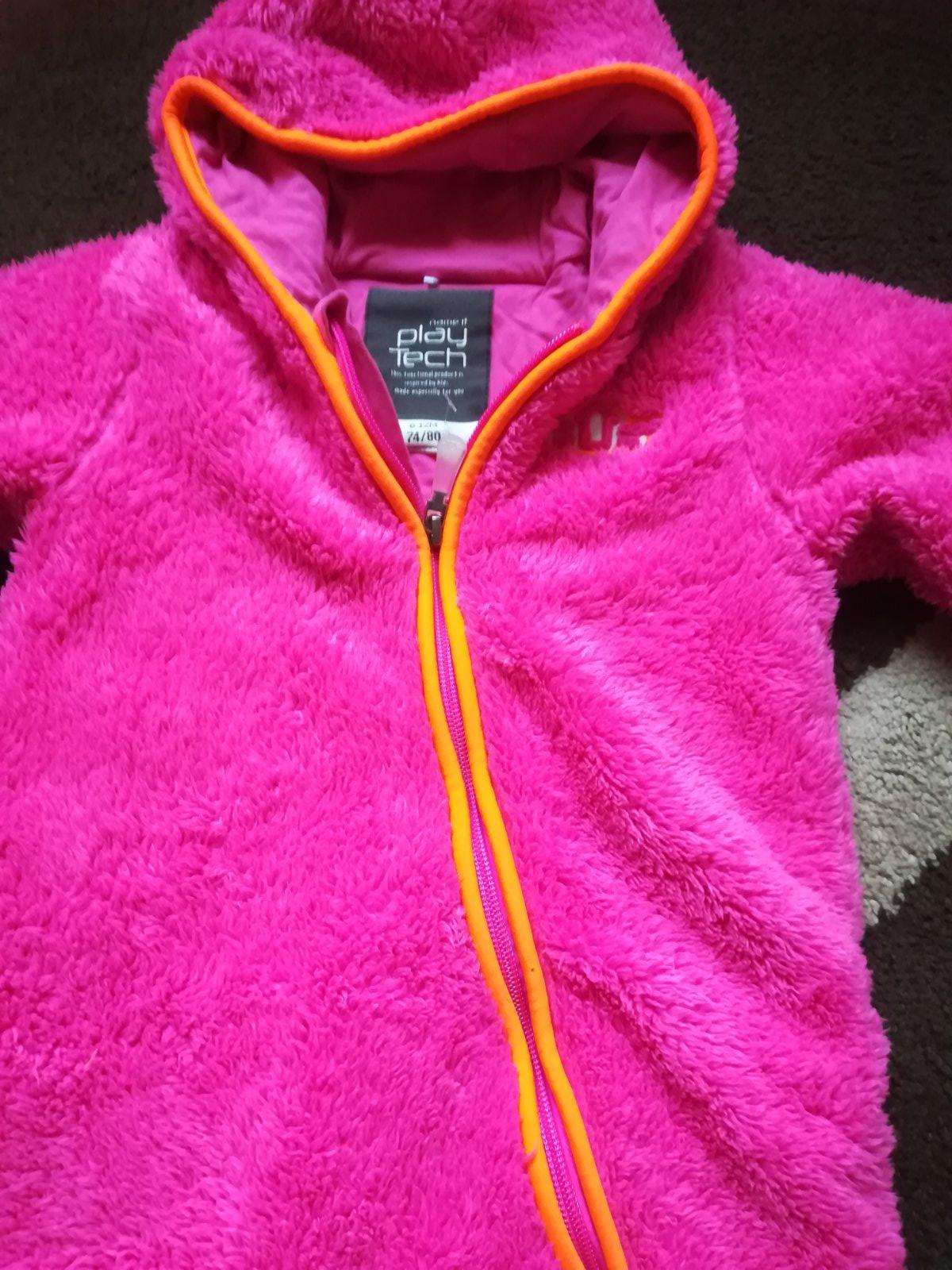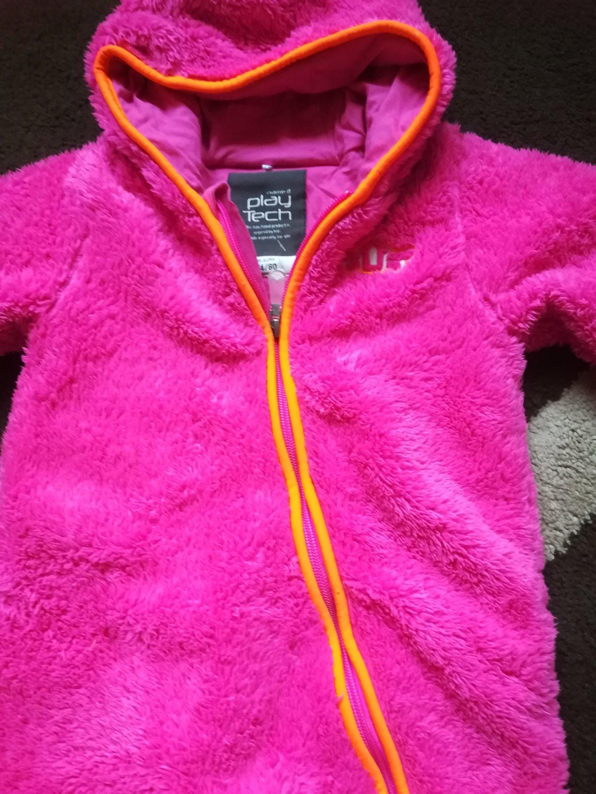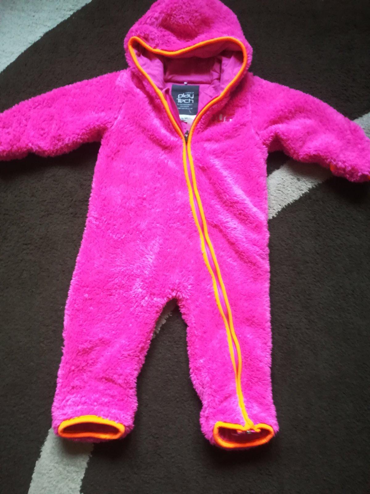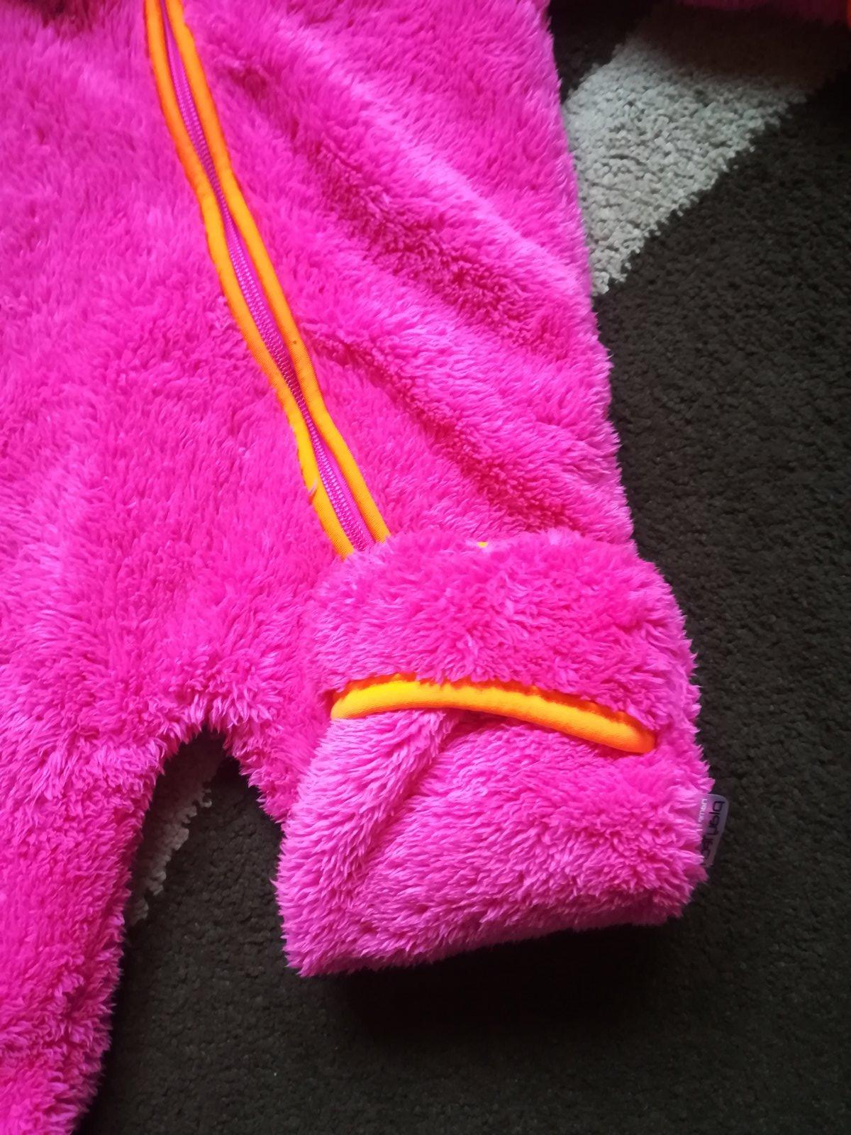 Krásny chlpatý overal, výrazne farby, rukavičky na rukách aj na nohách, top stav. Rukáv od krku 35cm, dĺžka 69cm, šírka 35cm