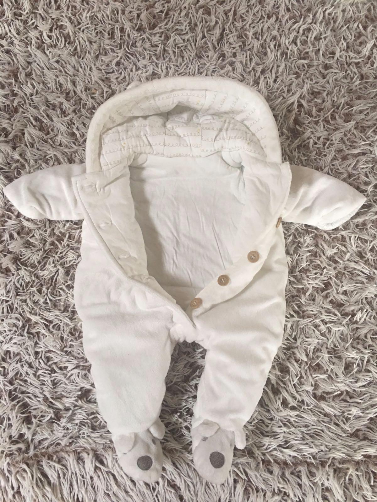 krasny overal vo veľkosti 62,veľmi malo noseny ...vynosi sa kludne aj ako 56ka...my sme v nom isli z porodnice ;) teplucky,vhodny na jesen/jar alebo aj zimu