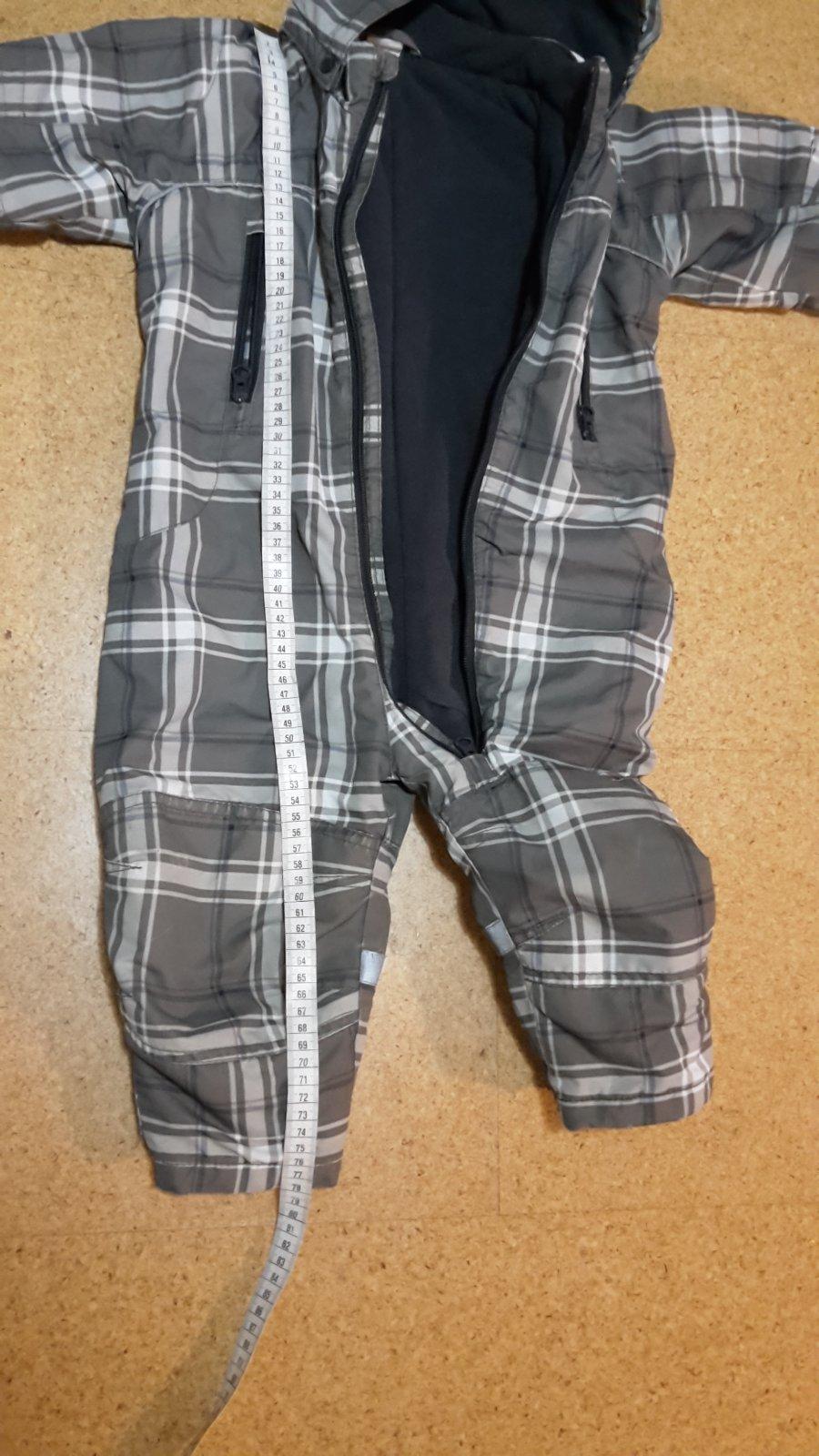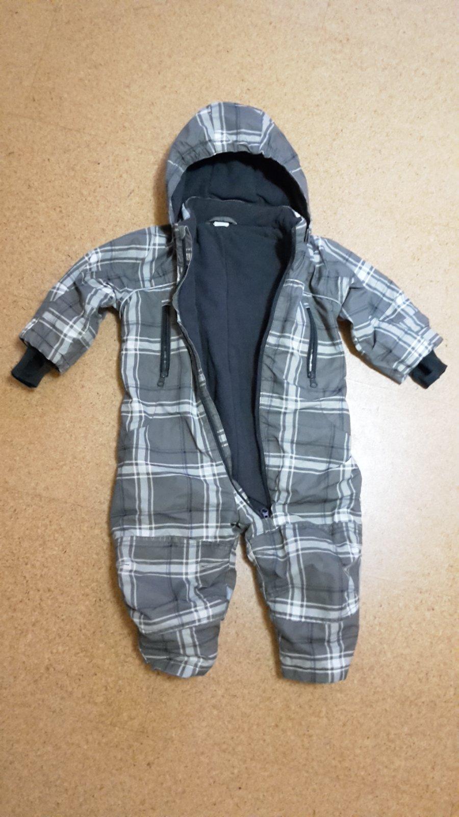 predám teplú zimnú kombinézu zn. H & M s odopínateľnou kapucňou a praktickými rukávmi a vreckami. Je podšitá flisom. Spodky nôh sú mierne ošúchané. vid foto. a na jednej nožičke sú zašité. /vid foto/. tomu je prispôsobená aj cena.