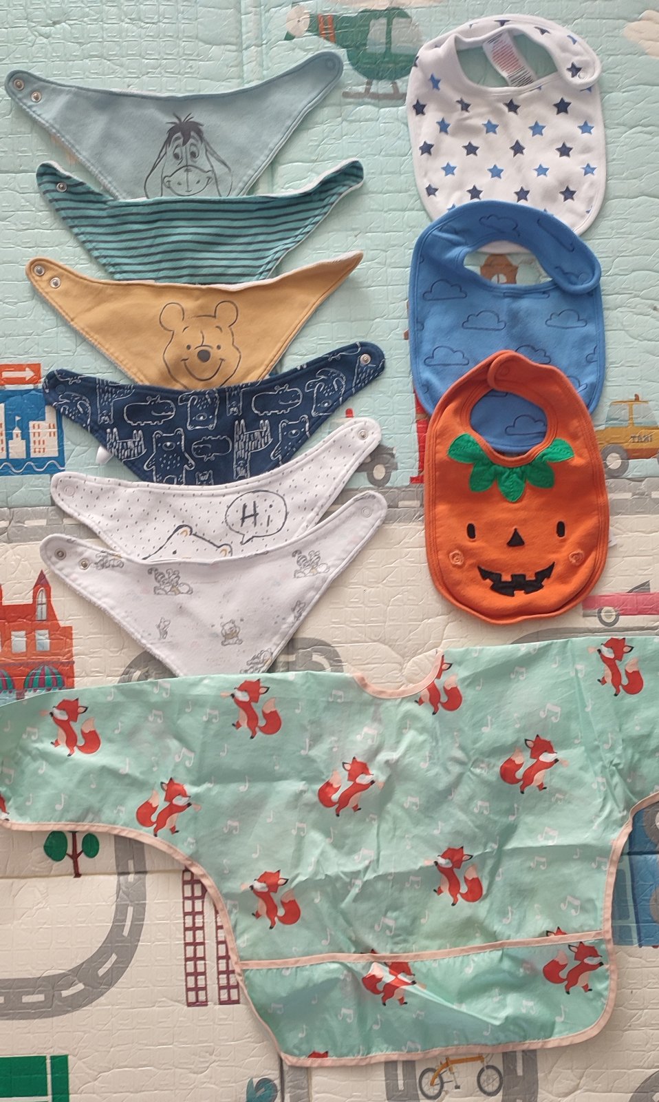 Ponúkam používané slintáčiky a podbradníky tak, ako ich vidíte na fotkách. Sú v peknom stave bez chýb.
