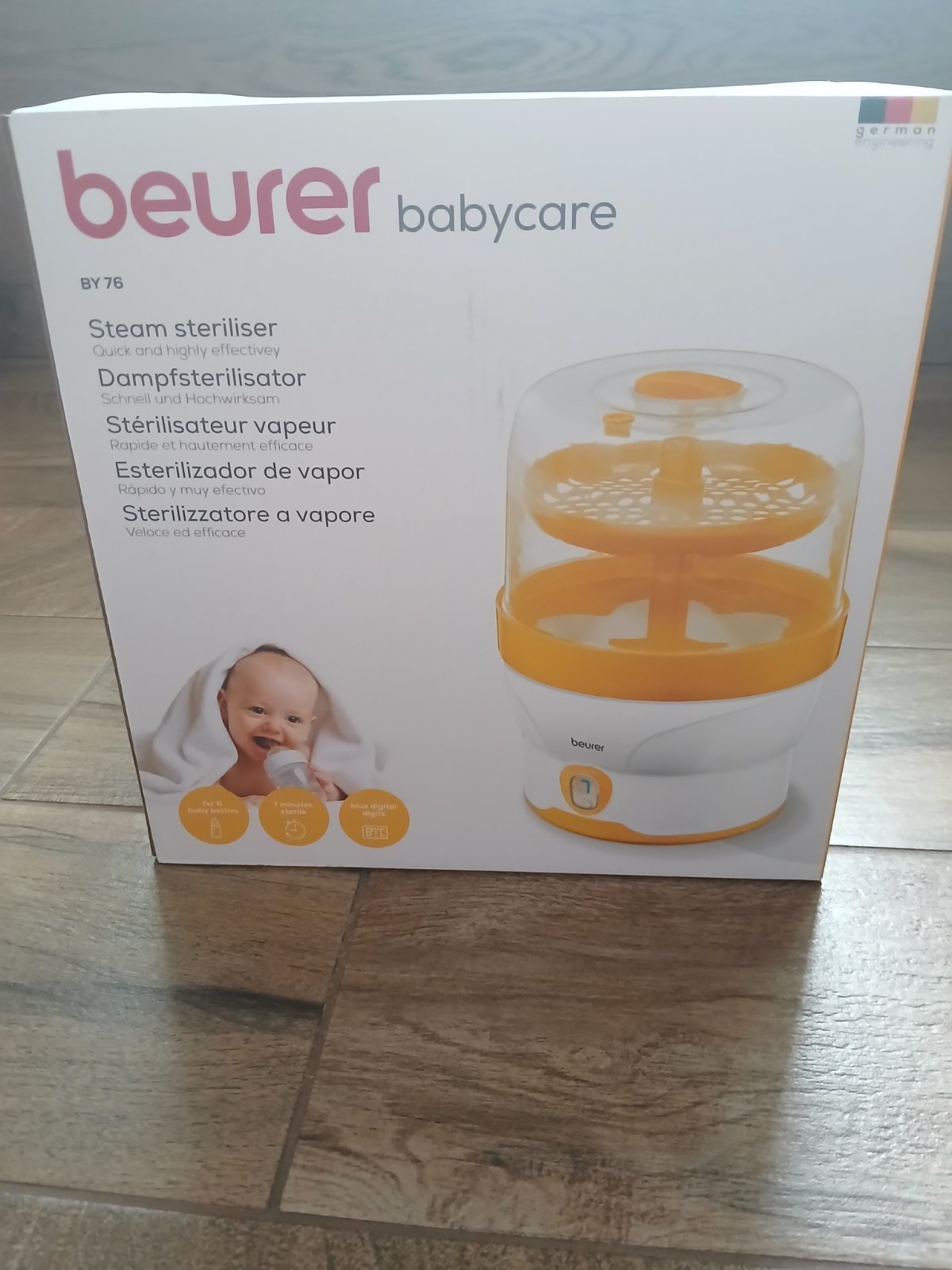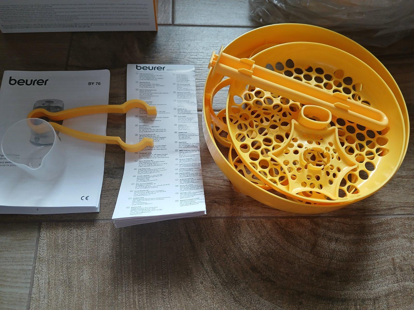 Parný sterilizator Beuer BY 76 vysterilizuje az 6 fliaš naraz len za 7 minút. Môžnosť sterilizovať cumlíky, hračky. Po vypnutí programu udržiava sterilitu až 3 hodiny. Bol minimum používaný, je ako nový. V prípade zájmu priložím dojčenskú fľašku zdarma( nová, nepoužívaná).