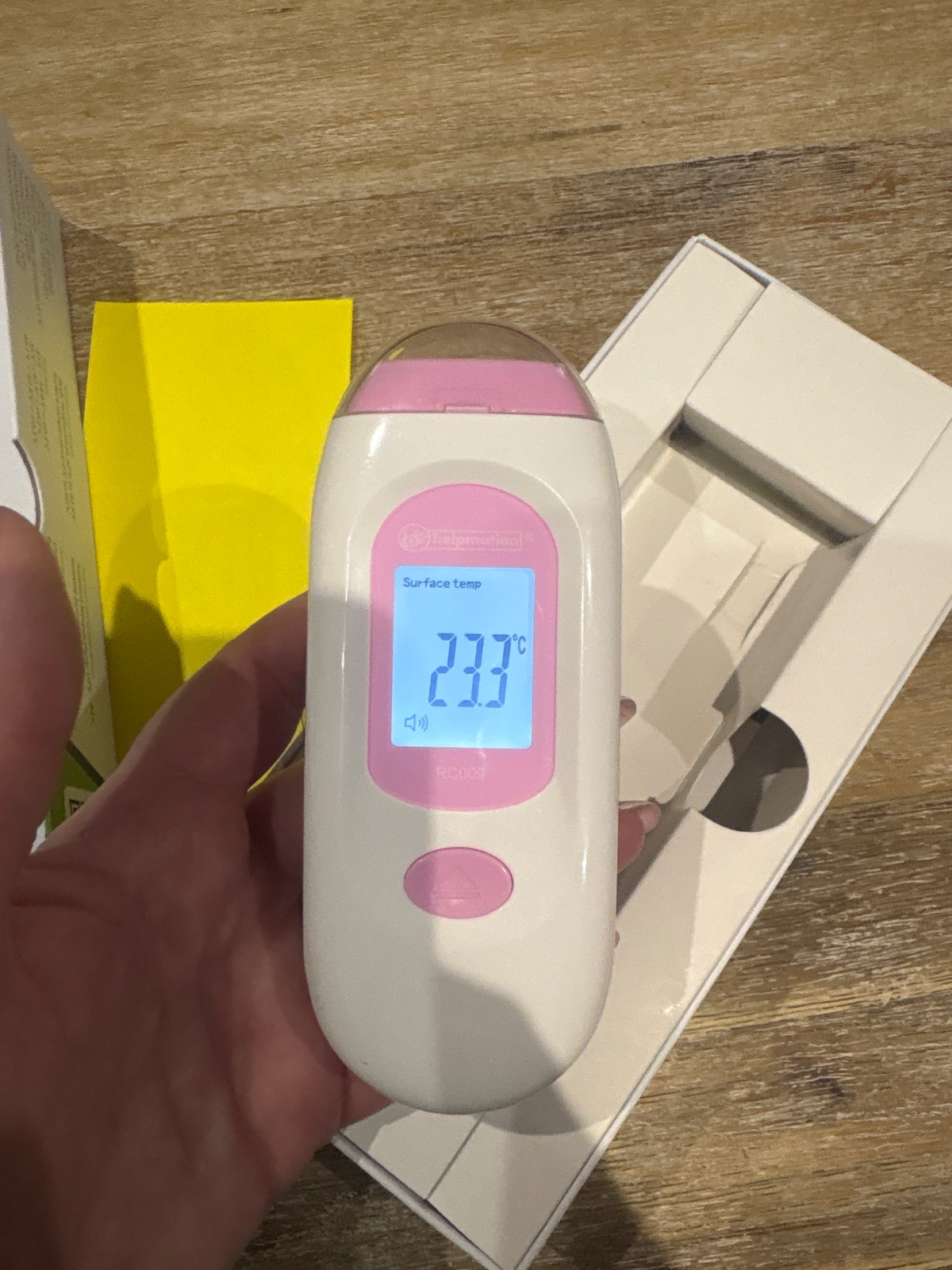Bezsotykovy teplomer, bateriu treba dat novu, uz je slaba.