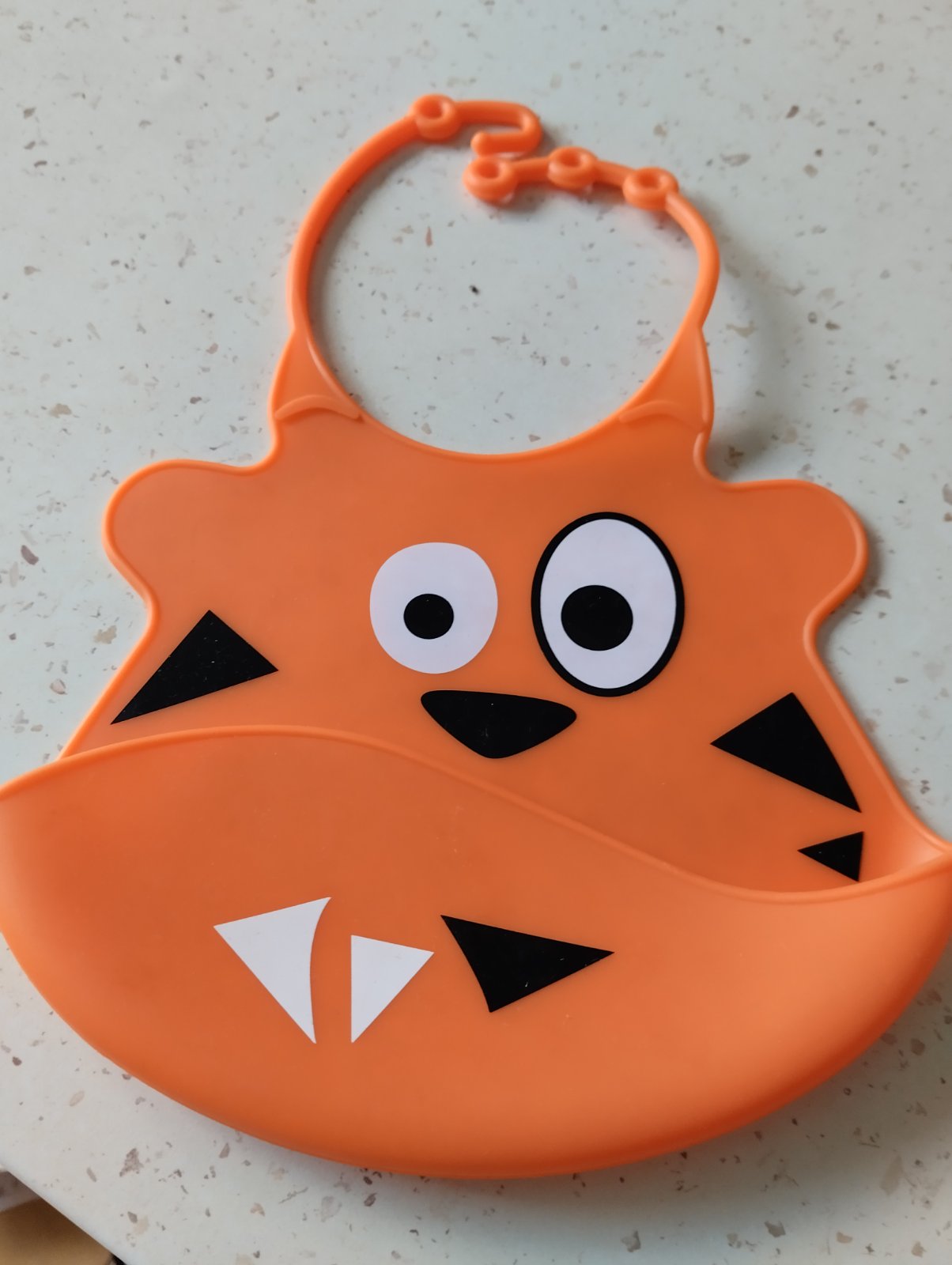 Minimalne pouzivany, s vreckom, ktore zachyti jedlo.
