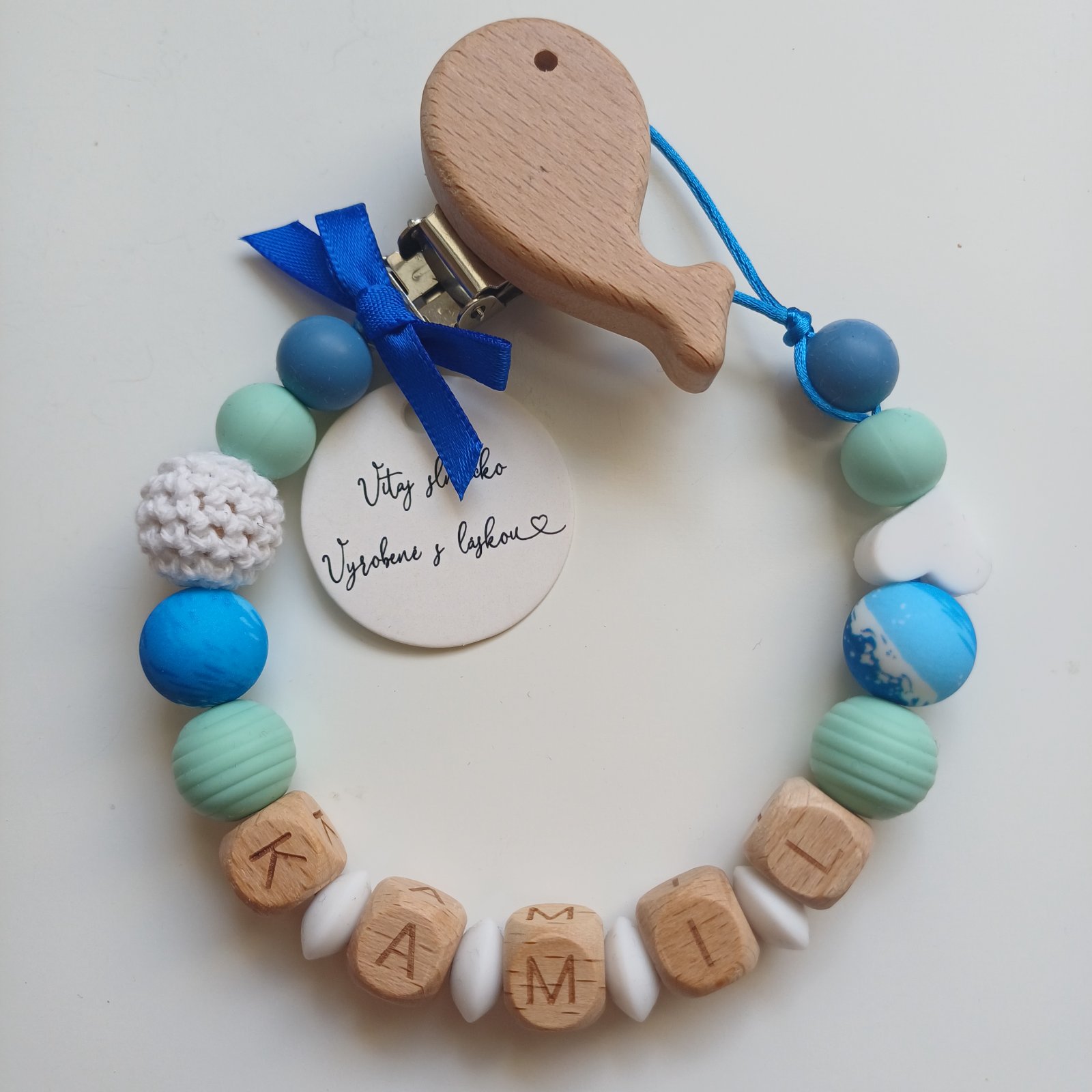Ručne vyrobená retiazka na cumlík bez karabinky, vhodná pre najmenších chlapčekov 👶💙