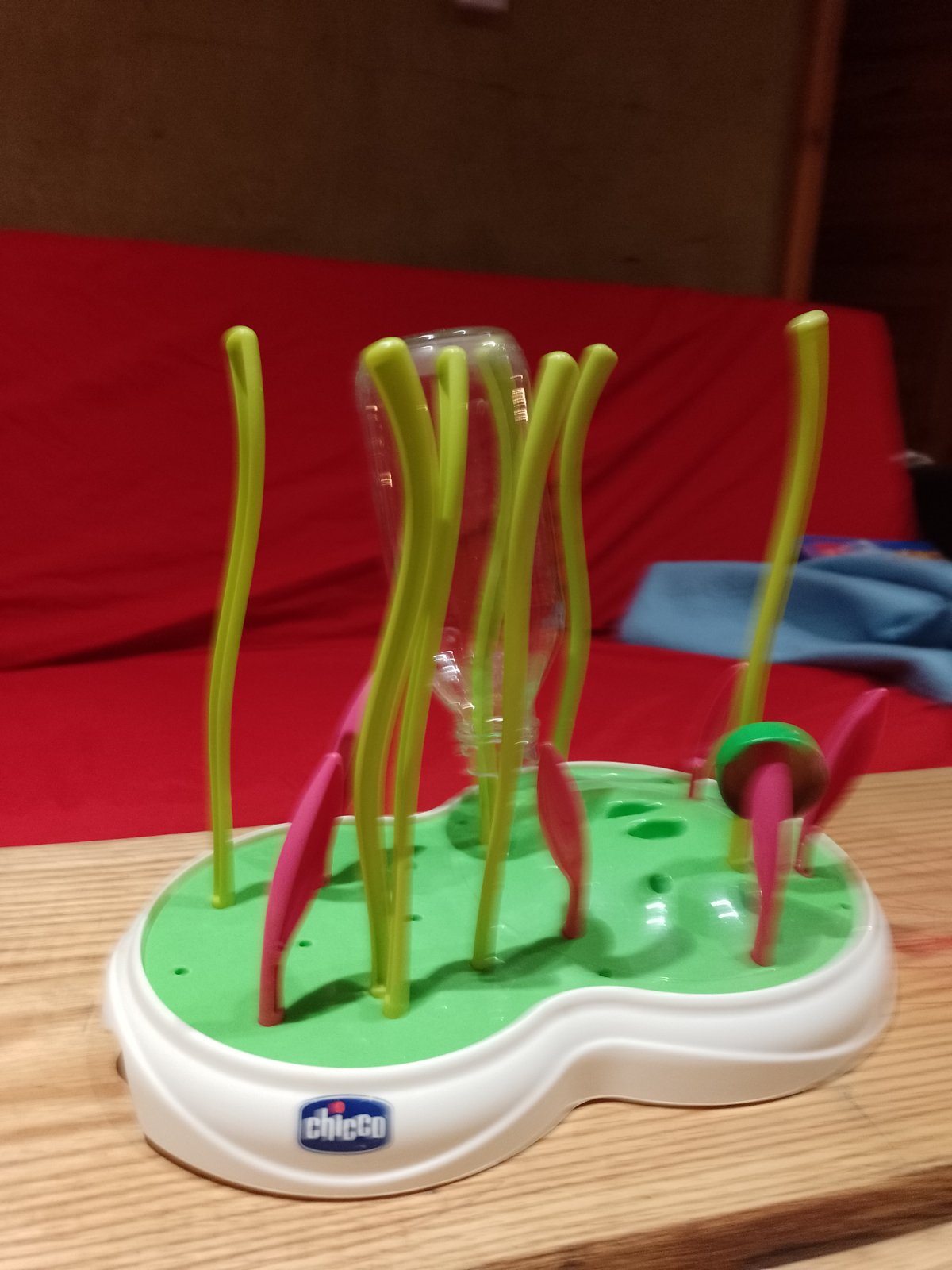 Detský plastový odkvapkávač na dojčenské fľaše a lyžičky z pevného plastu. Neskôr možno použiť napr. v kúpeľni na zubné kefky,poháriky a pod. Možnosť umývať v umývačke riadu. V prípade nepoužívania...