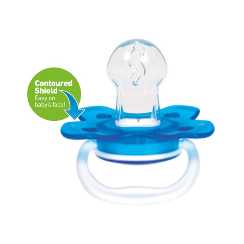 Okrem toho, základňa bradavky, ktorá je tenšia než dvojnásobok štandardných modelov, zabezpečuje zníženie negatívneho vplyvu na ústa a zuby dieťaťa. Tento model je tiež vybavený ventilom, ktorý znižuje tlak na podnebí a tým minimalizuje riziko nesprávneho zhryzu v budúcnosti.