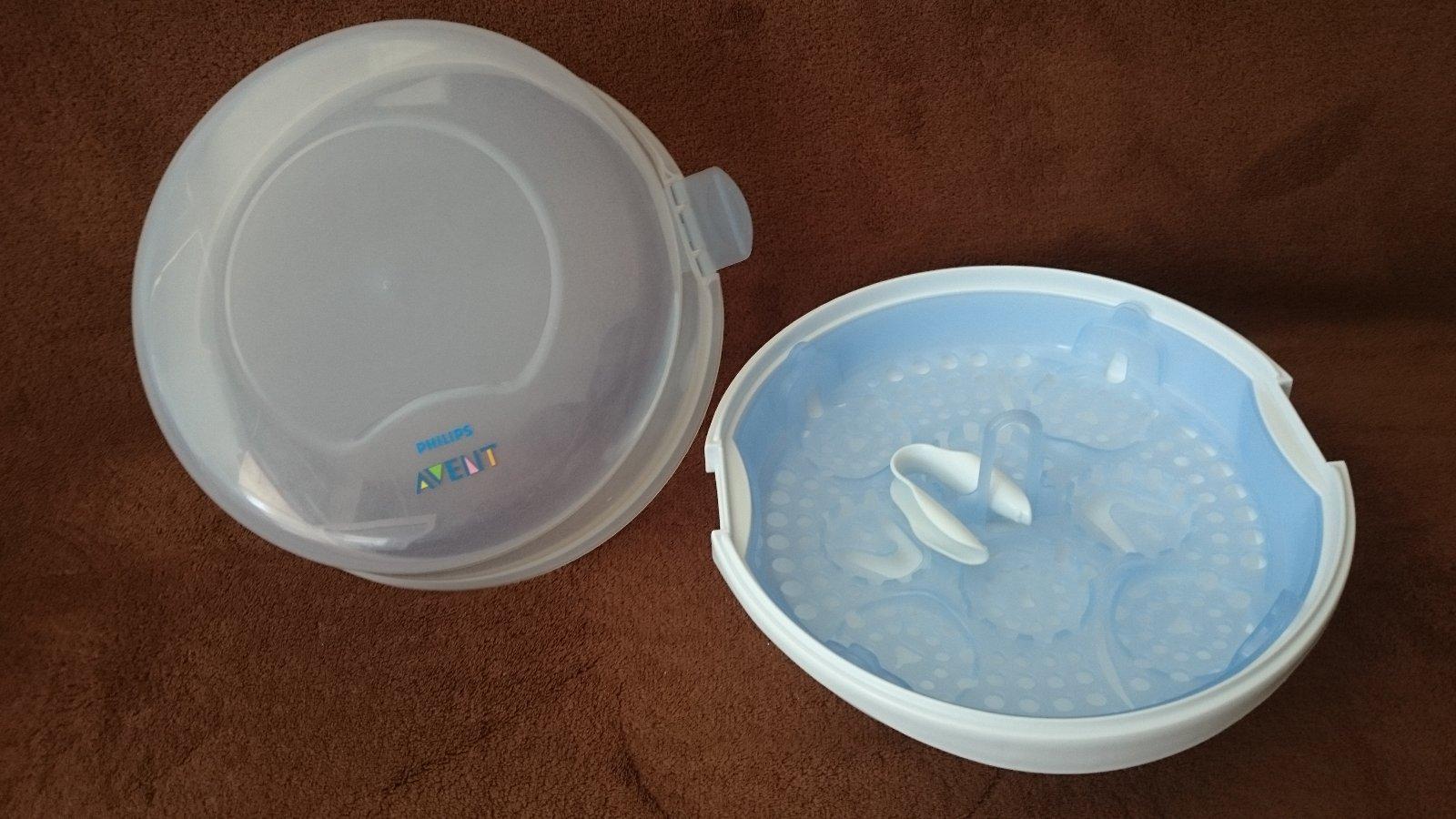 Predám parný sterilizátor do mikrovlnnej rúry značky Philips Avent. Väčšia kapacita (6 fliaš AVENT 260 ml) pre sterilizovanie dennej potreby fľašiek. Veľmi dobrý stav. Obsahuje vrchnák so zatváracími klipsami, košík na fľašky a príslušenstvo, nádobu, kliešte pre vyberanie sterilizovaných vecí.