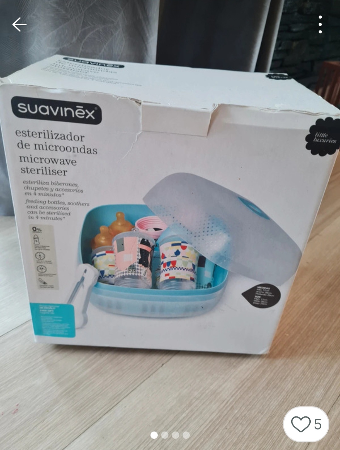 Predám málo používaný sterilizátor zn. SUAVINEX. TOP stav. - sterilizuje až 6 kojeneckých fliaš, cumlíky a iné doplnky do 15 minút. - automatické vypínanie - sťahovací skladný systém - 0% Bisfenol ...