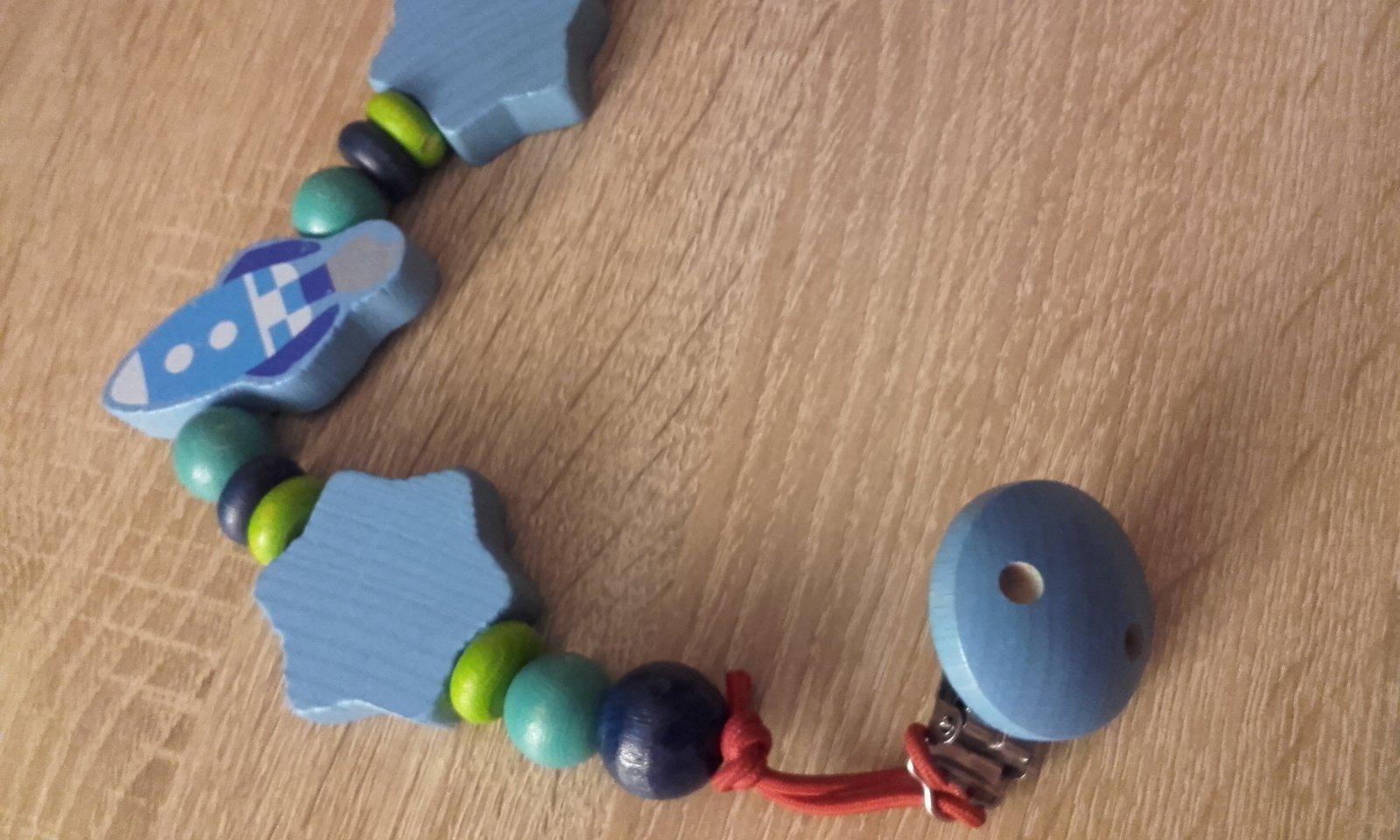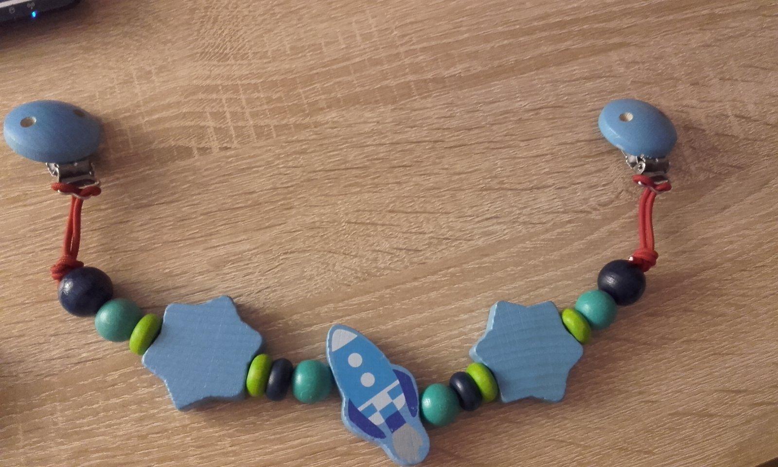 Málo používaná šnúrka na zavesenie cumlíka alebo hračky. Klips na oboch stranách.