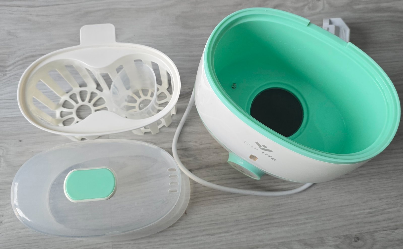 Multifunkčný ohrievač a sterilizátor v jednom pre 2 dojčenské fľaše, s rýchlym a rovnomerným ohrevom oboch fliaš naraz, niekoľkými úrovňami preferovanej teploty, funkciou dlhodobého udržania teploty, funkciou automatického vypnutia, LCD pre kontrolu teploty, tichým chodom, jednoduchou obsluhou a čistením,