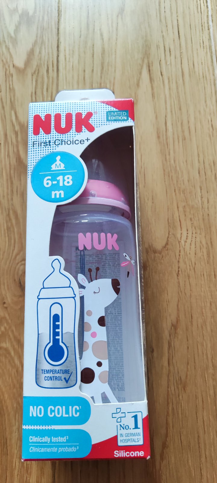 Nová fľaša značky Nuk, s kontrolou teploty. Cena 5€.
