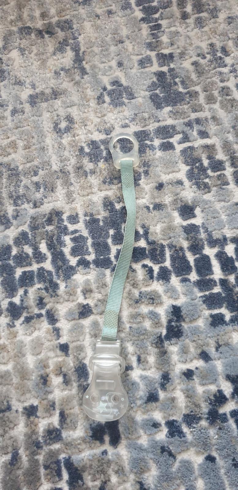 Málo používaná šnúrka na zavesenie cumlíka alebo hračky. Klips na oboch stranách.