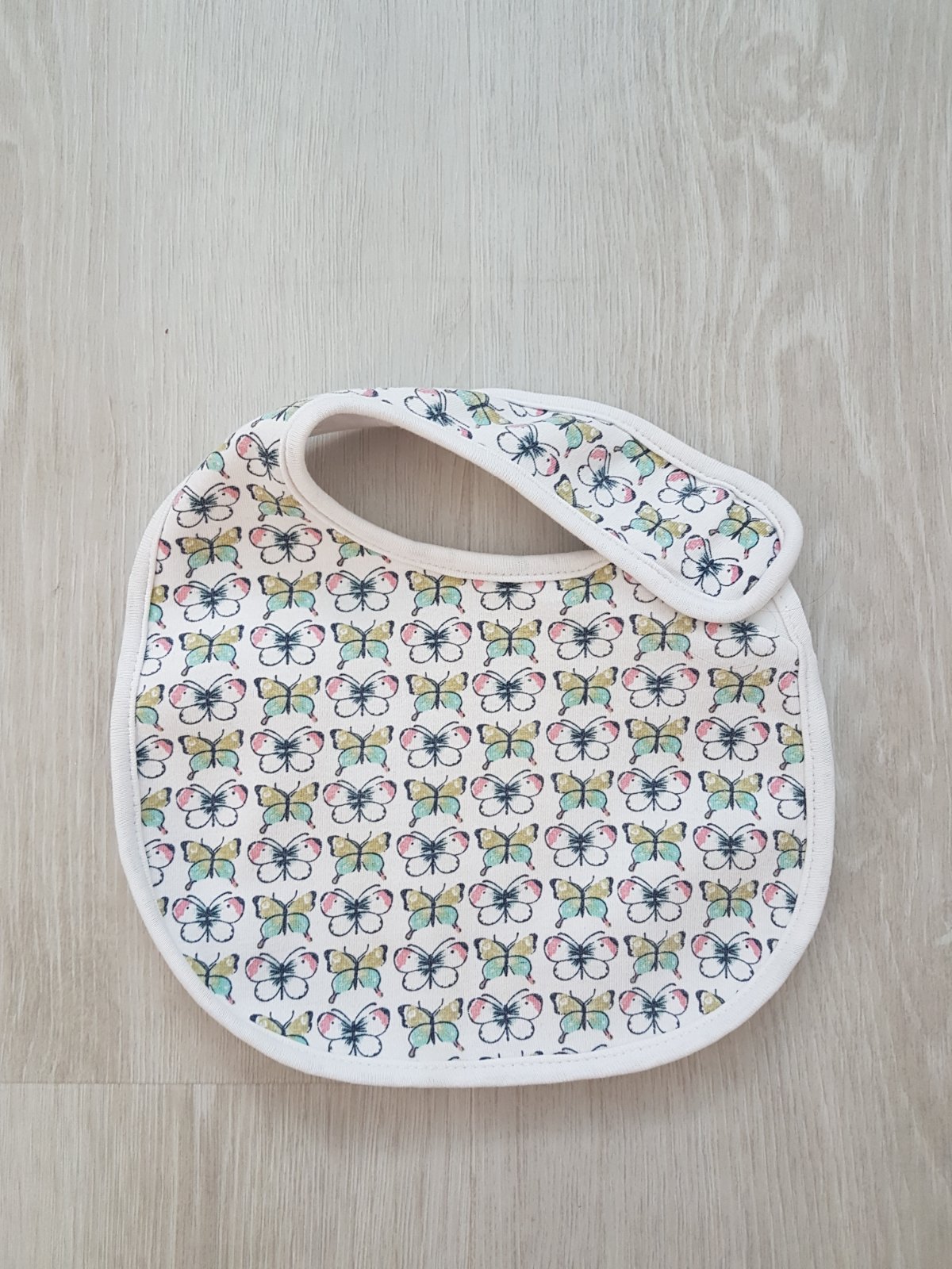 Predám párkrát použitý podbradník značky Next s potlačou motýlikov.