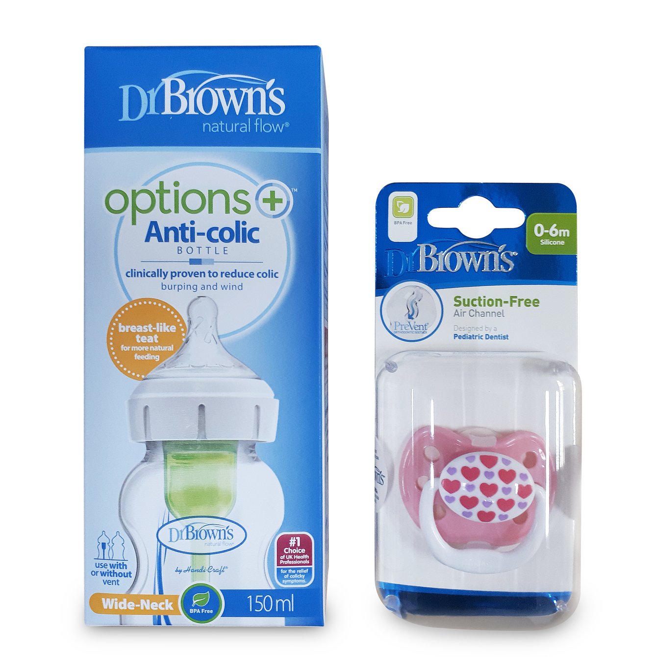 Táto dojčenská fľaška, navrhnutá lekárom, Vám prináša unikátny patentovaný systém optimálneho prisávania vzduchu, ktorý výrazne znižuje výskyt bolesti brucha, zvracania, odgrgávania a nafukovania. Vnútorný prietokový ventil zabraňuje tvorbe vzduchových bublín v materskom mlieku alebo v inej tekutine. Nedochádza k tvorbe vákua, čo napomáha eliminovať nepríjemný vnútroušný tlak. Svojím tvarom veľmi dobre imituje dojčenie a je ideálny na podávanie materského mlieka alebo inej tekutiny. Vyberte si správny cumlík. Dr.Brown's cumlíky sú z veľmi mäkkého, vysokokvalitného silikónu.