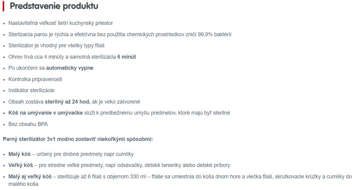Potreby pre dojčatá / Sterilizátory, príprava stravy