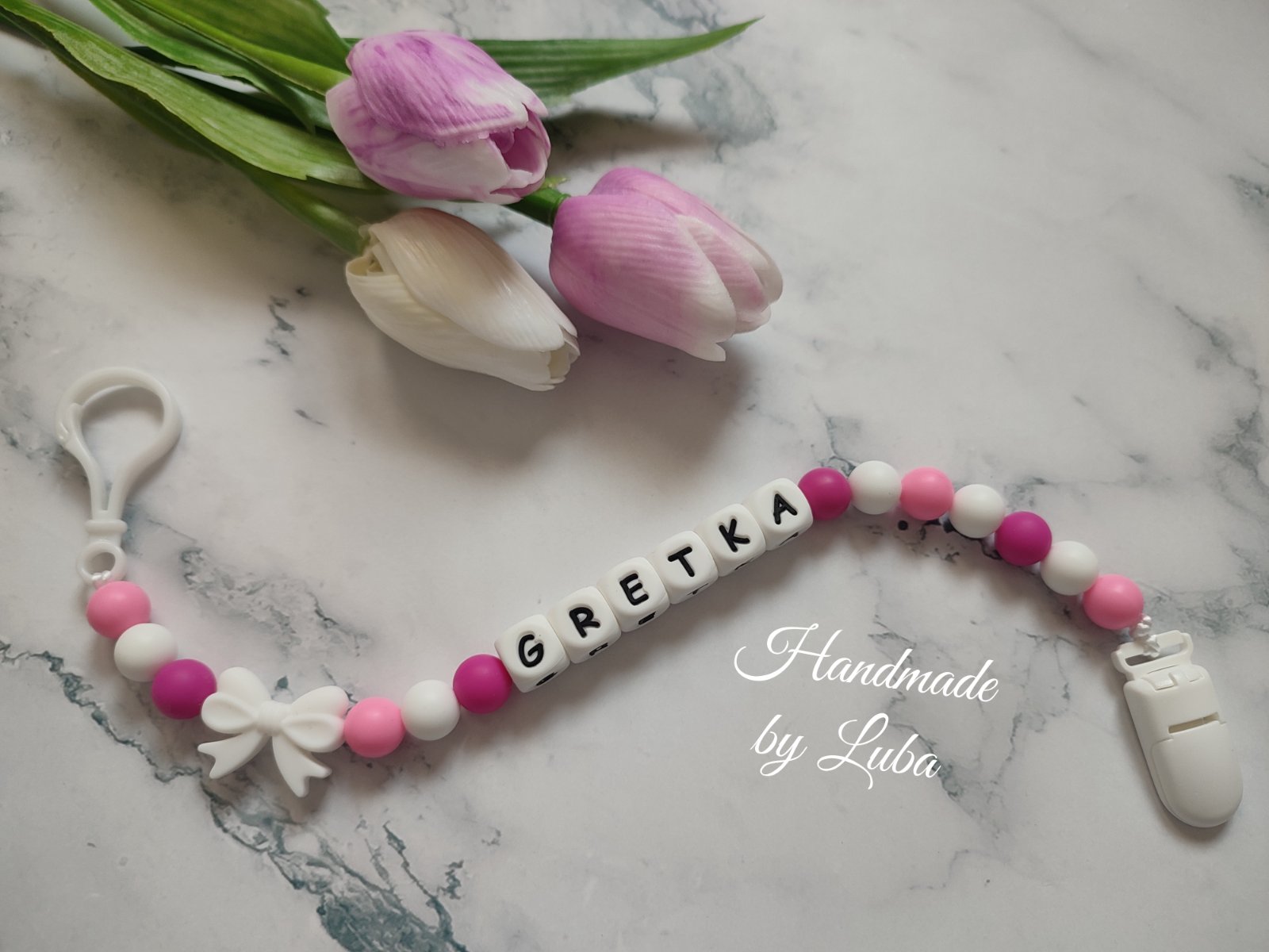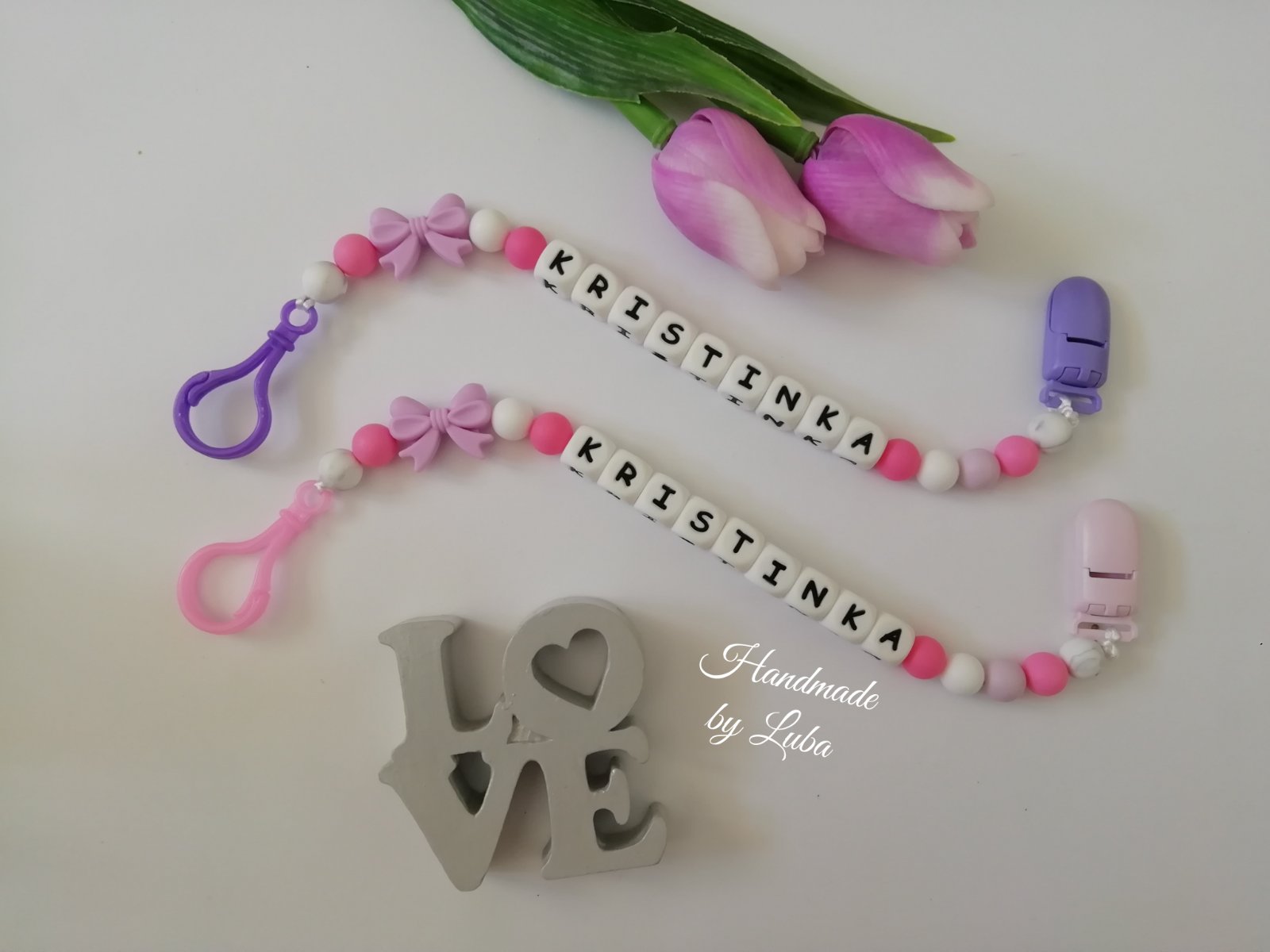 Narodilo sa vám v rodine alebo medzi kamarátmi bábätko? Nevieš ako potešiť mamičku a bábätko? Vyrábam silikónové retiazky na cumlík s menom v rôznych farbách. Vyrobím na želanie podľa požiadaviek. Cena je bez poštovného.