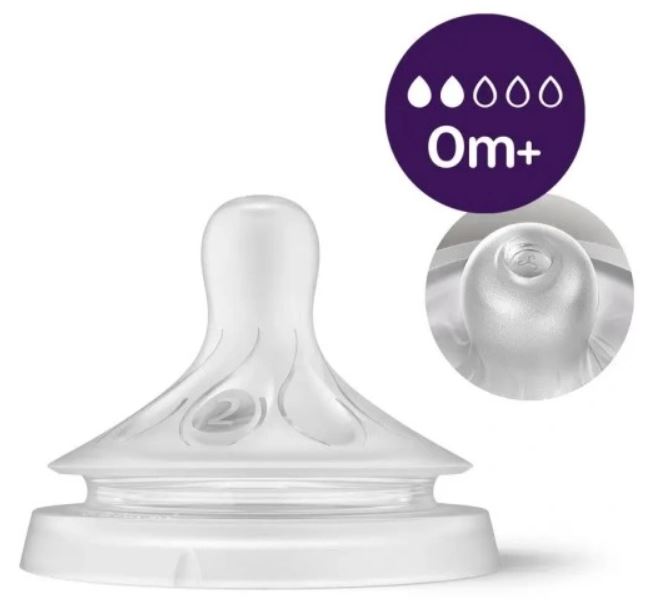 Široký, mäkký a ohybný cumlík je navrhnutý tak, aby imitoval tvar a pocit z prsníka a pomohol dieťaťu pohodlne sa prisať a kŕmiť.