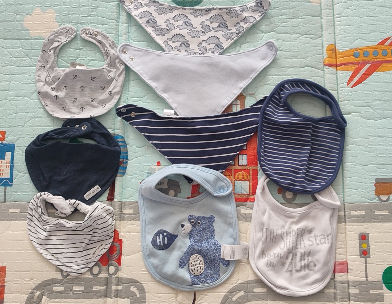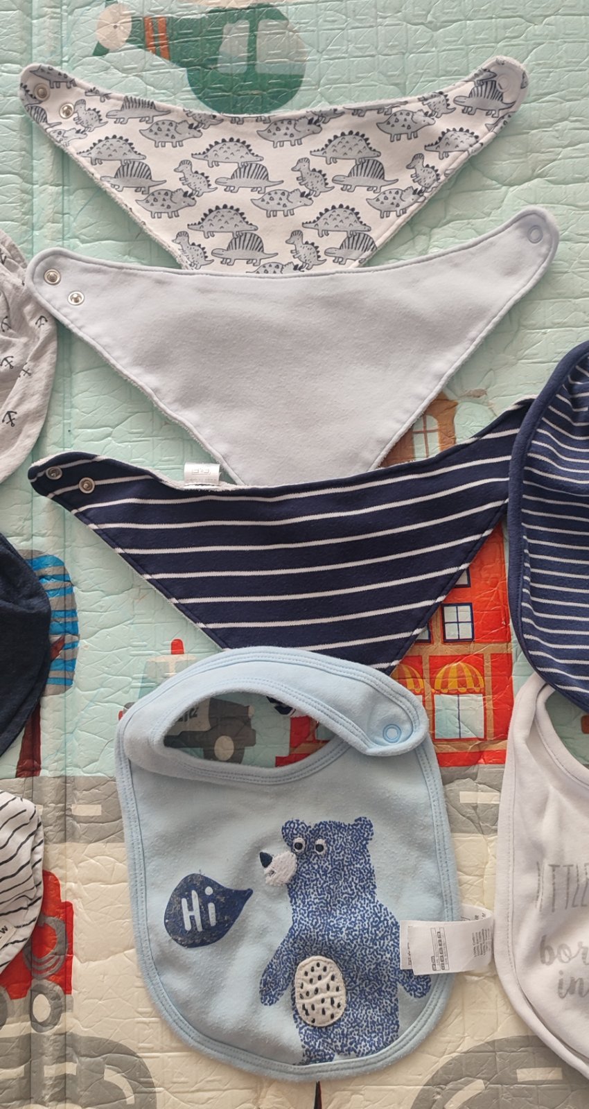 Ponúkam používané slintáčiky a podbradníky tak, ako ich vidíte na fotkách. Tri zľava sú značky H&M, ostatné F&F.