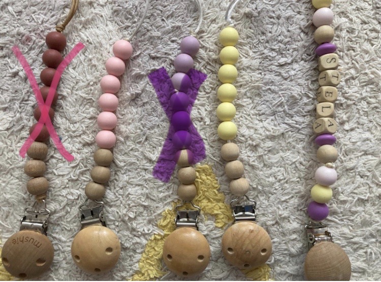 *Ružový, žltý a fialový sú vyrobené Handmade na štýl značky Mushie a pekne farebne ladia s cumlíkmi Bibs. Cena 5e/ks. Z tejto série fialový PREDANY.