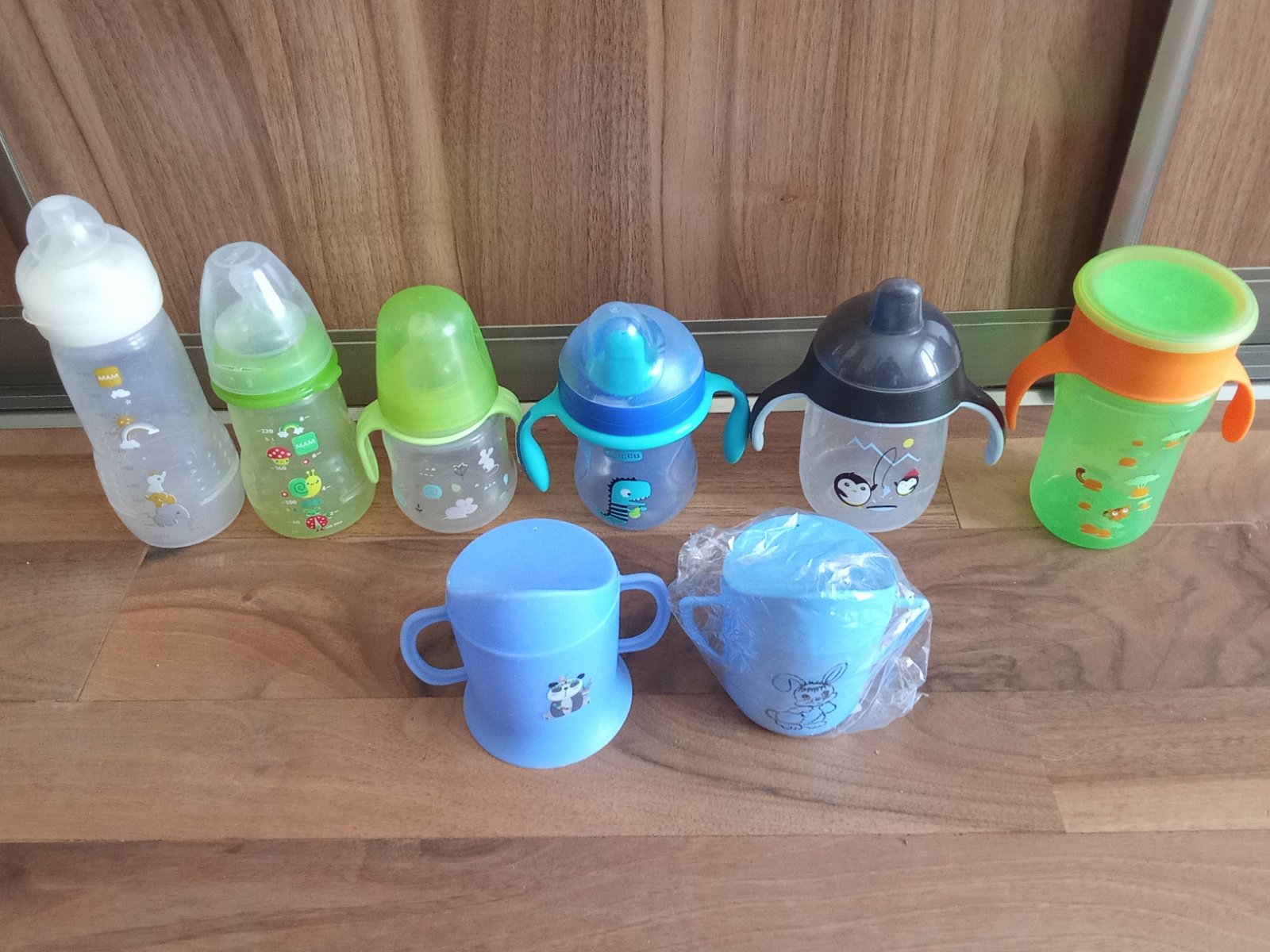 Predám používané dojčenské fľaše a fľaše na pitie. Zadný rad 3eura predný 1,50e (pohár na pitie). Značka Avent, Mam...a iné.