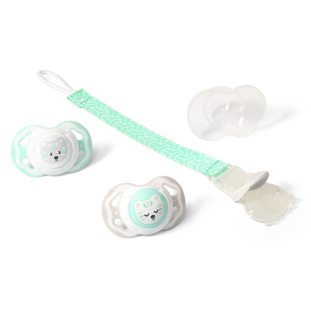 Materiál: Dudlík je vyrobený zo silikónu - materiál, ktorý neobsahuje žiadne škodlivé látky, je úplne priehľadný a bez chuti.