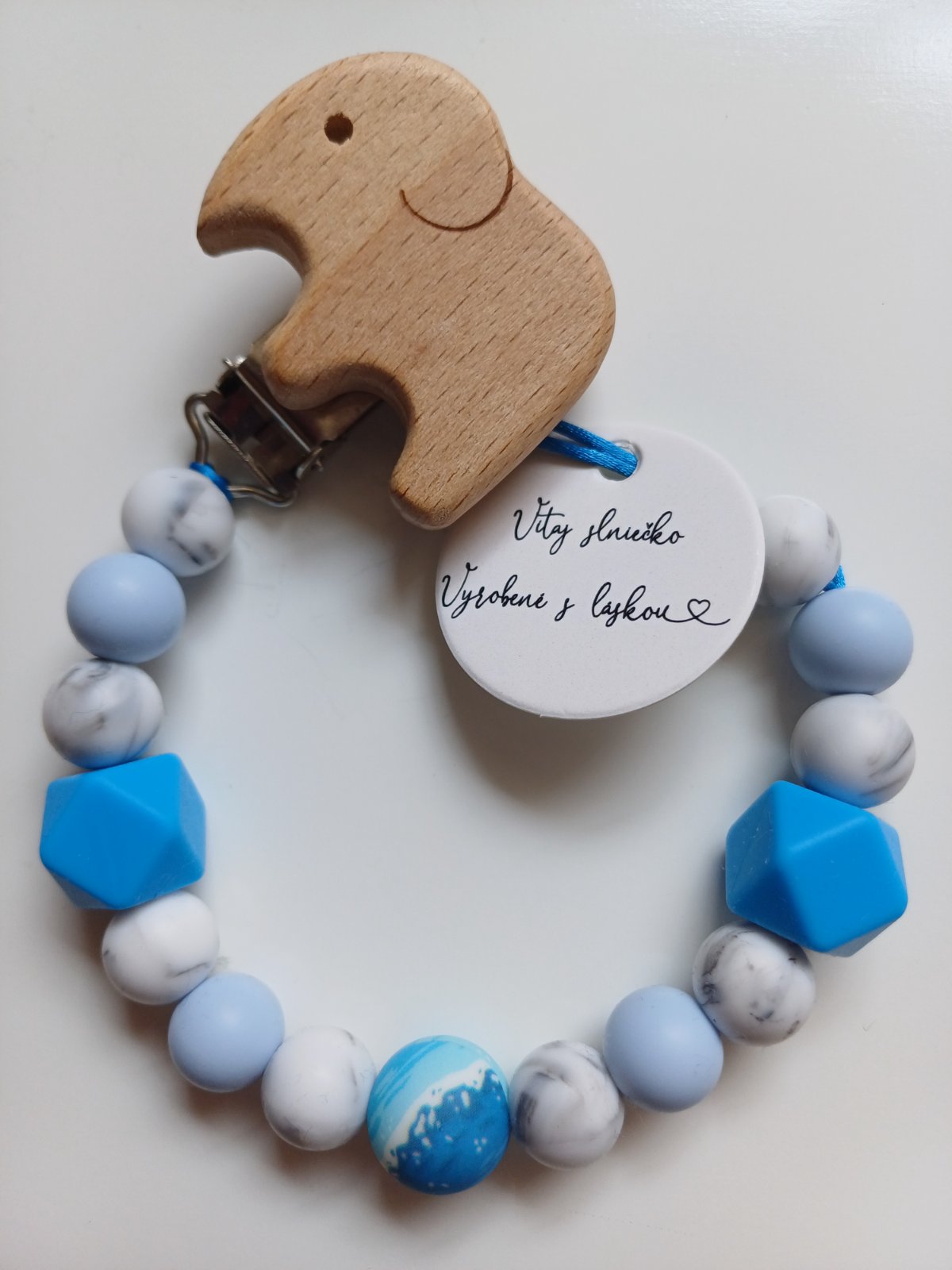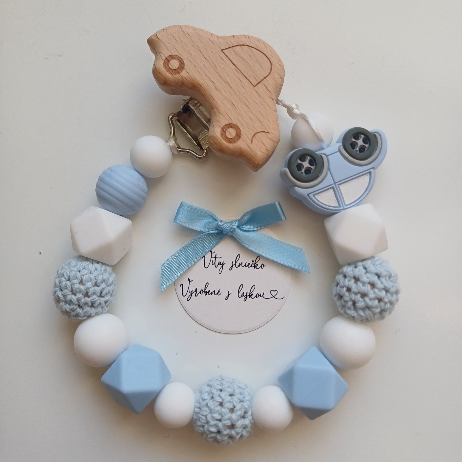 Táto retiazka na cumlík je vytvorená pre malého chlapčeka, ktorý objavuje svet okolo seba 👶💙