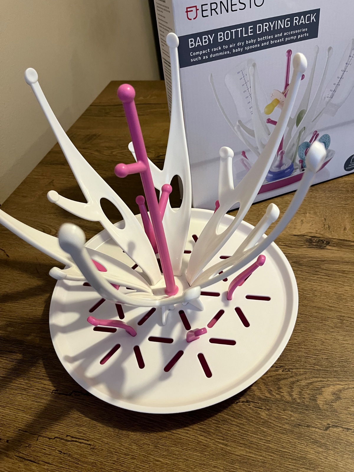 Odkvapkávač na 12 fliaš/cumlikov, dá sa vysúvať či zložiť, stojančeky si prispôsobíte podľa seba. Používaný, v dobrom stave bez poškodení.