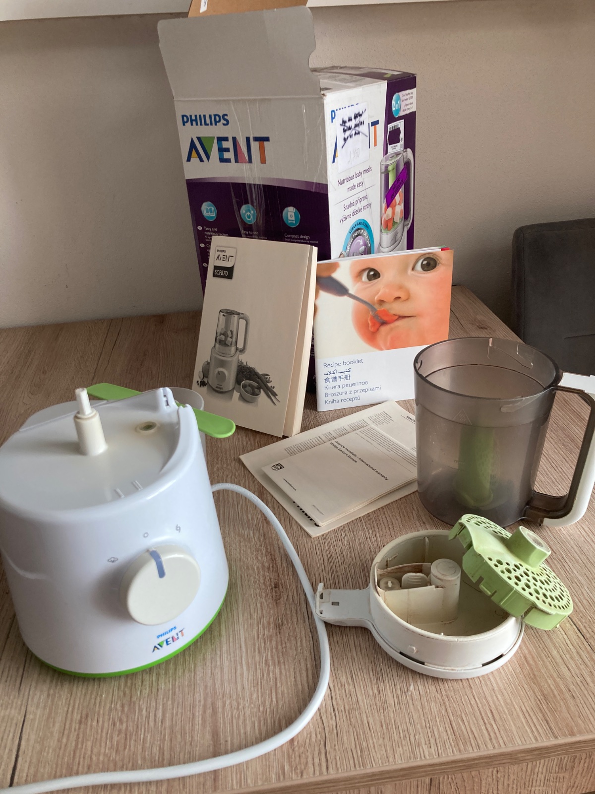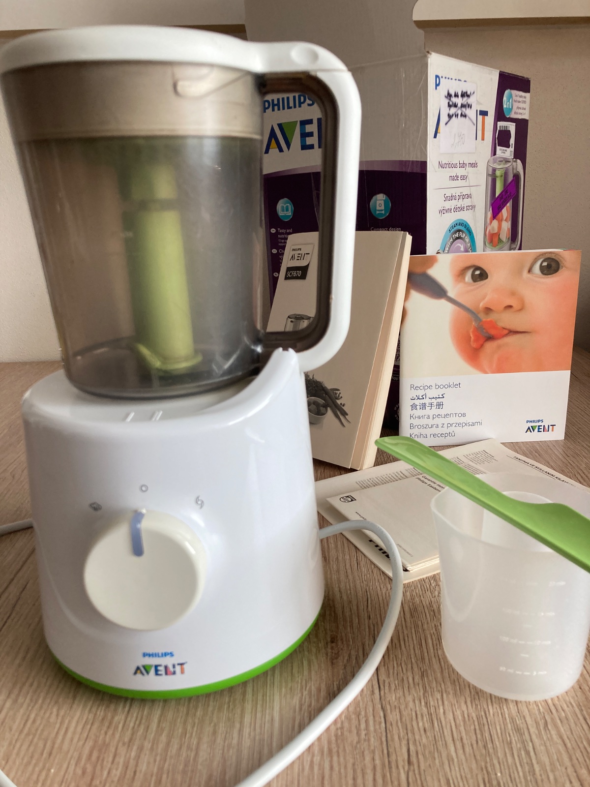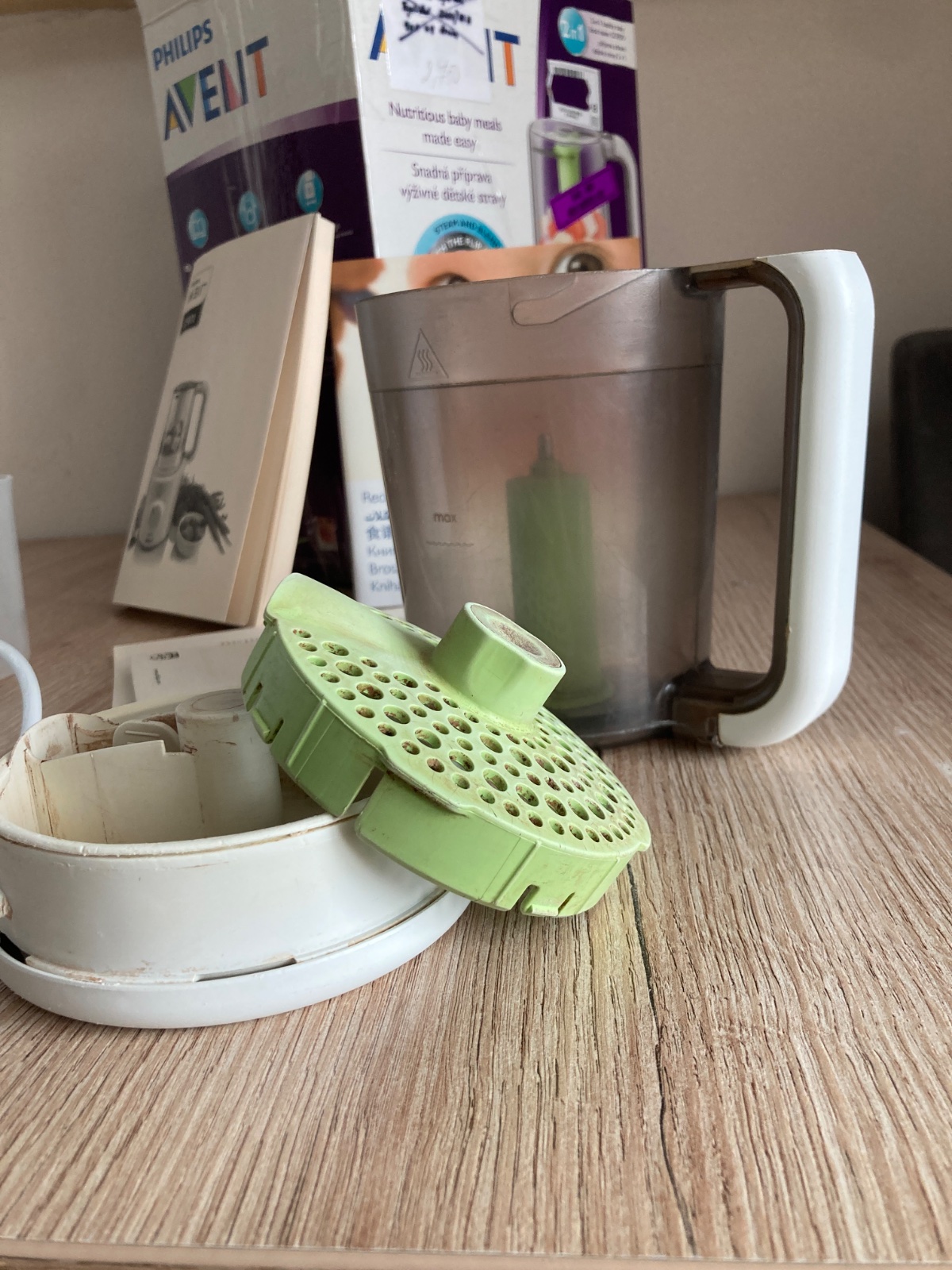 Predám parný mixér Philips Avent 2v1 na prvé príkrmy, zeleninu, ovocie, mäso naparí, otočením nádobky rozmixuje.