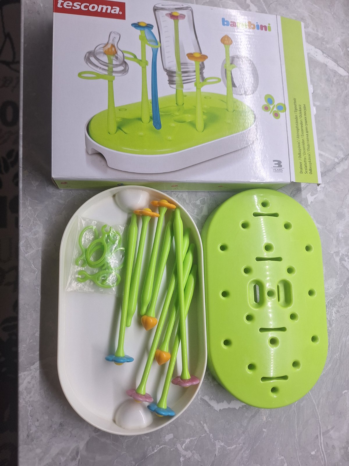 Odkvapkávač na 12 fliaš/cumlikov, dá sa vysúvať či zložiť, stojančeky si prispôsobíte podľa seba. Používaný, v dobrom stave bez poškodení.
