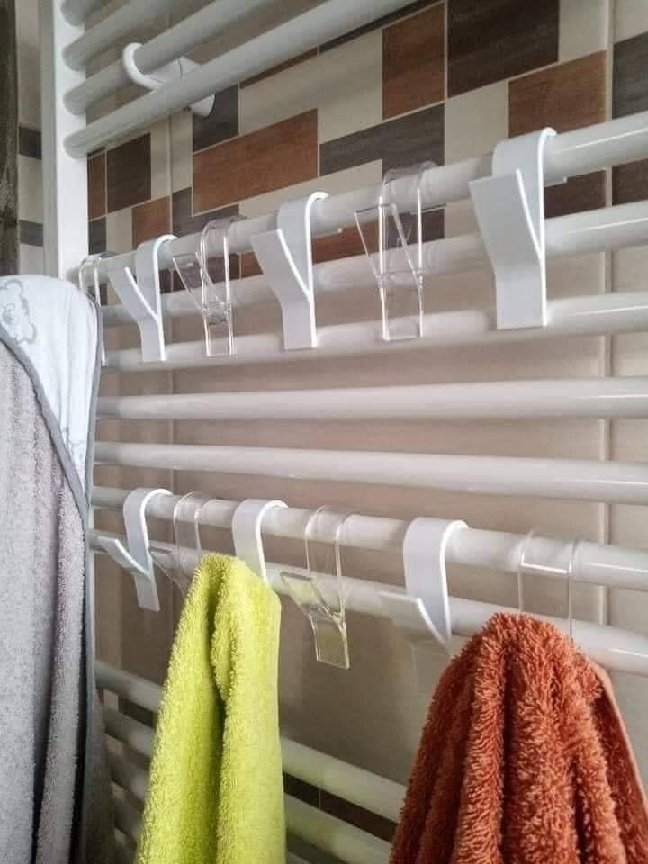 5 kusov biele - háčiky na rebríkový radiátor, presne formované tak, aby krásne zapadli na radiátor. K predaju 5 kusov v bielej farbe. Foto ako ich máme založené. Máme ich veľa, tak pár kusov posielam. Cena za 5 ks.