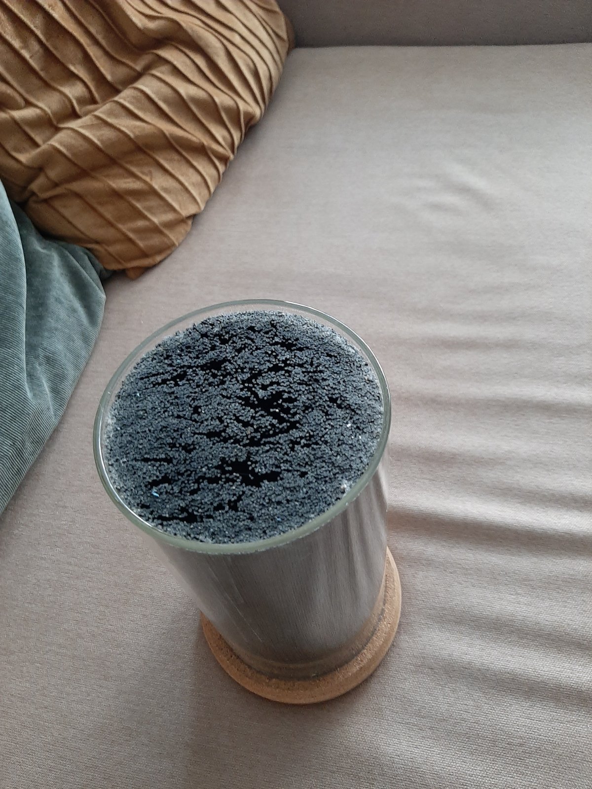 Skleneny biokrb, s prislusenstvom a zbytkom paliva biolieh