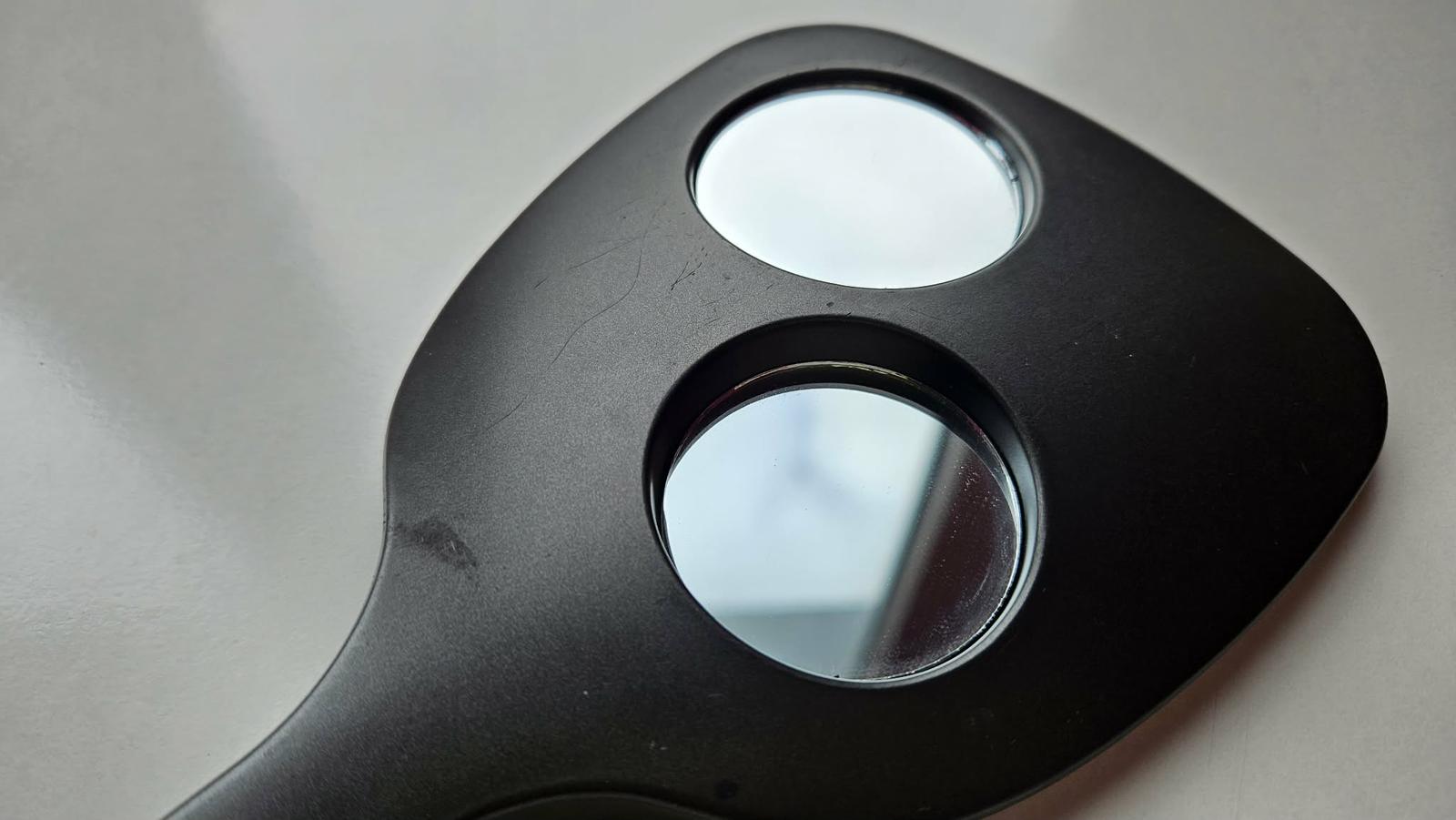 zadná strana: dve samostatné menšie zrkadlá, ktoré poskytujú zväčšenie
