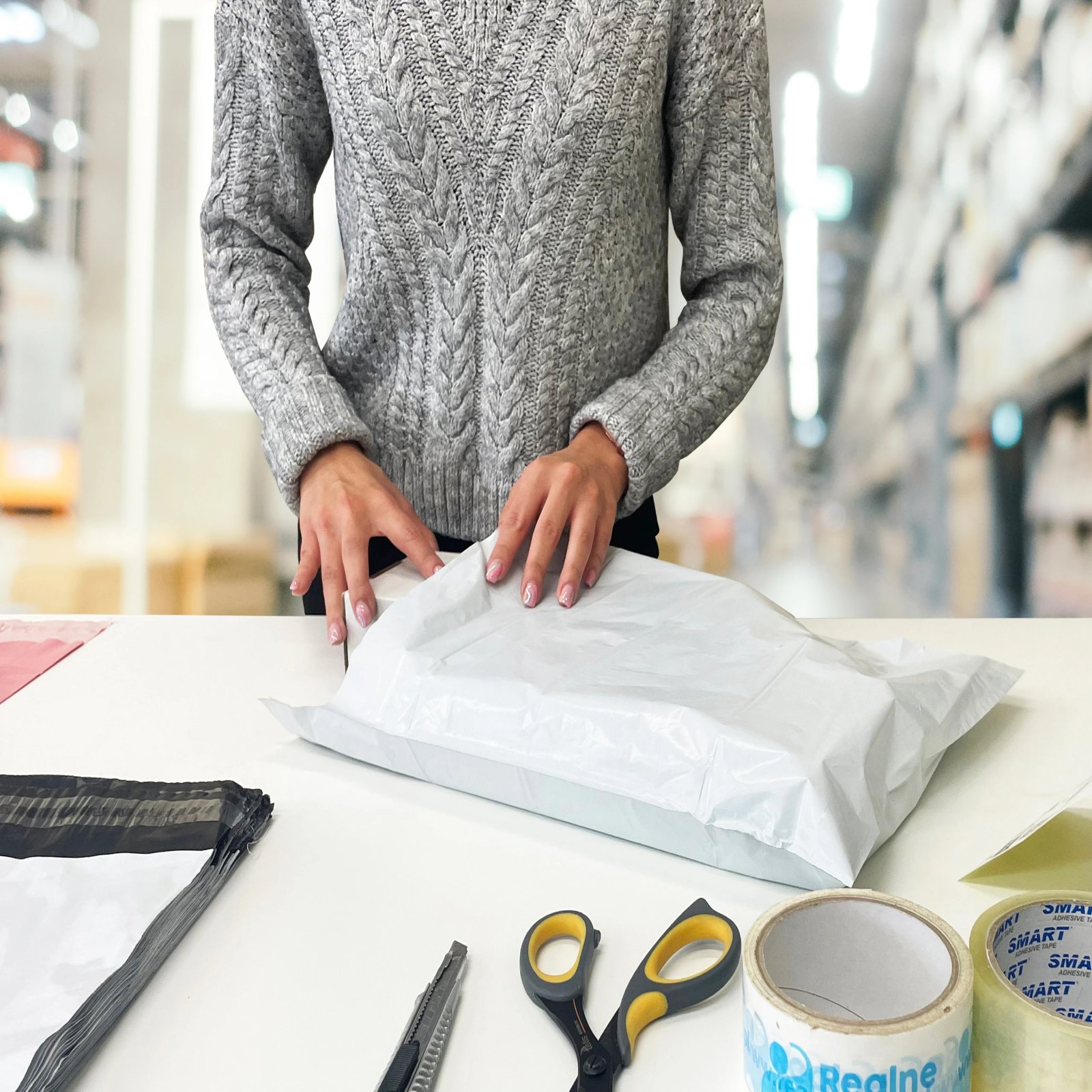 Samolepiace plastové obálky zo stredne silného viacvrstvového igelitu LDPE (60 mikrónov) vhodné pre zasielanie oblečenia, lôžkovín, tlačovín a ďalších mäkkých vecí. Jednoduchá manipulácia vďaka ľahkému vloženiu obsahu, strhnutiu ochrannej pásky a prilepeniu okraja vrecka. Obálky možno popisovať popisovačmi na plasty, tiež je možné na ne nalepiť etikety. Lepidlo veľmi pevne drží, po zalepení nie je možné znovu odlepiť bez viditeľného poškodenia zásielky. Materiál je dostatočne pevný a zároveň pružný natoľko, aby odolal bežným mechanickým vplyvom pri preprave. Cena za 1 ks. Rozmery: 400×500 mm.