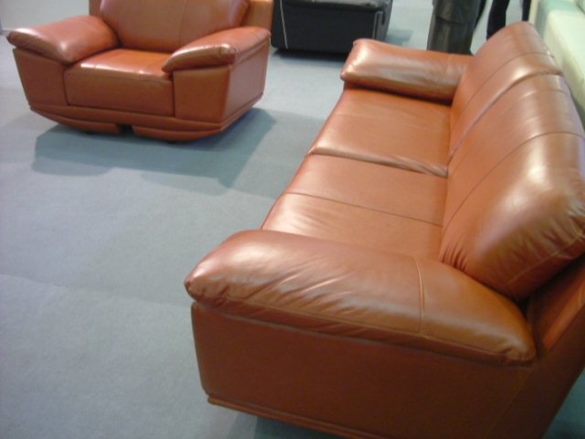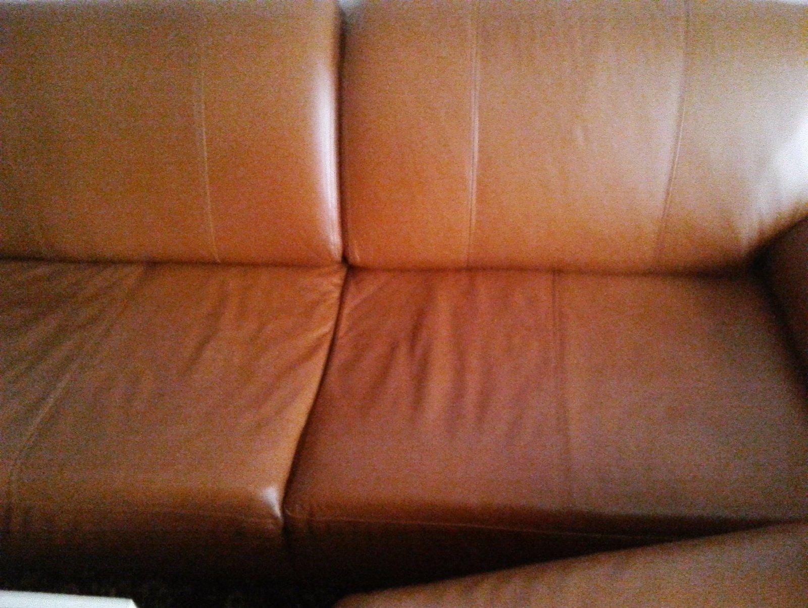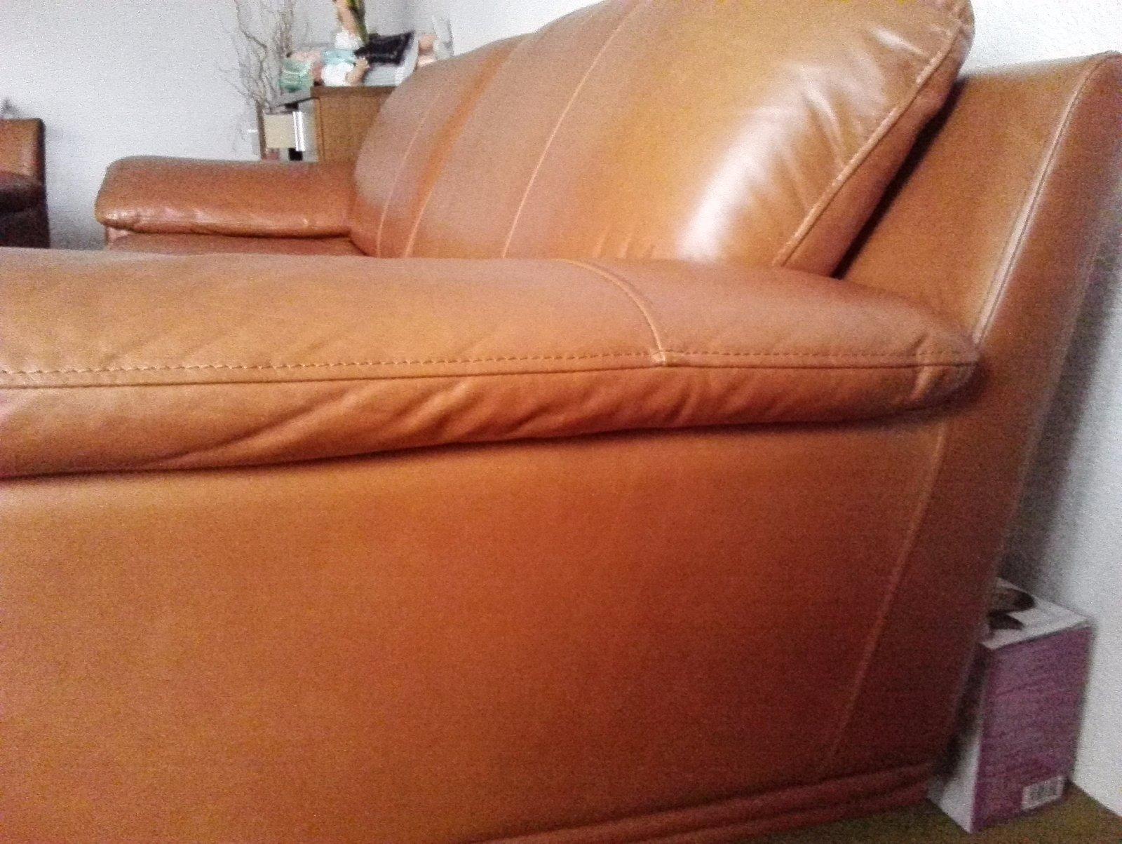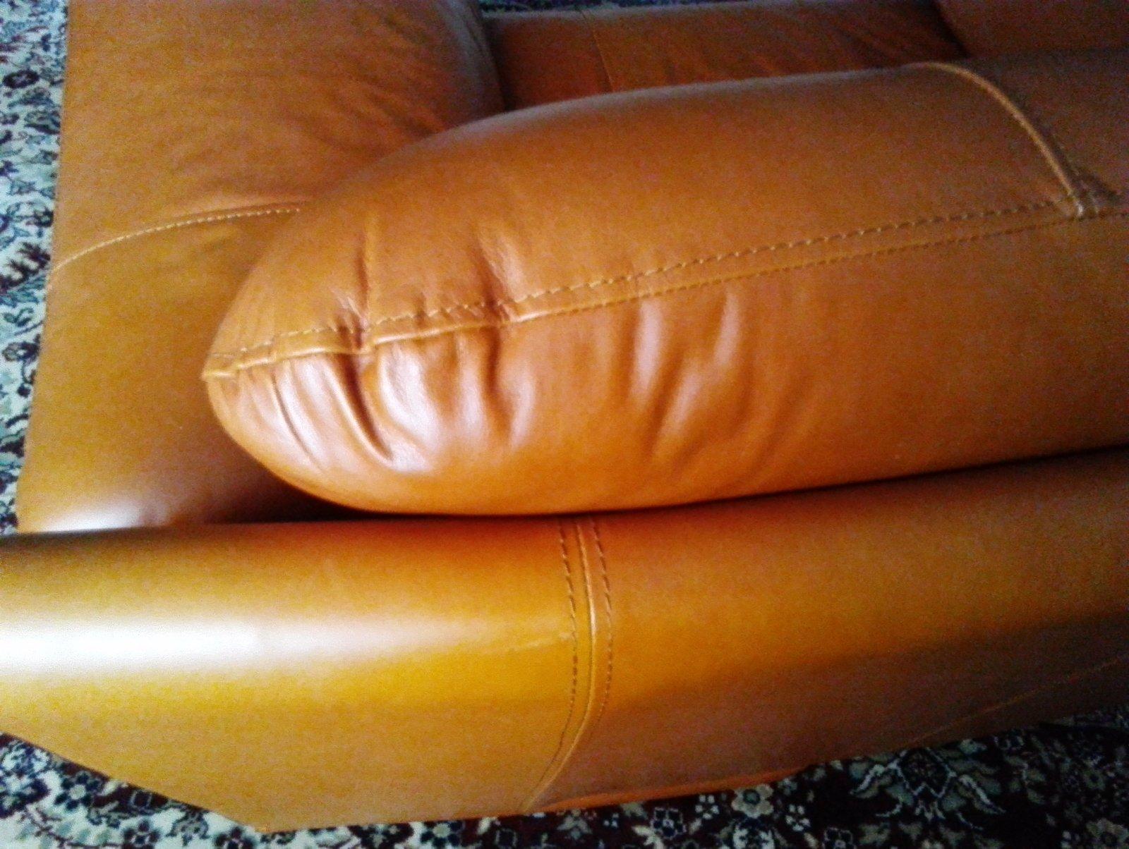 Sedacka v super stave, dve jednotky a jedna trojka, mohutne. Vhodne do velkeho priestoru, kozena, tmavy oranz.