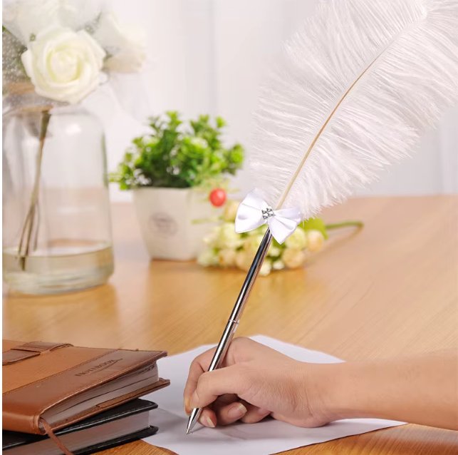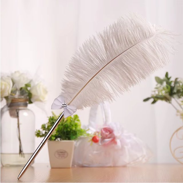 Materiál: pštrosie perie + kov. Vyrobené z luxusného pštrosieho peria a odolného kovu, toto pero kombinuje eleganciu s dlhou životnosťou.