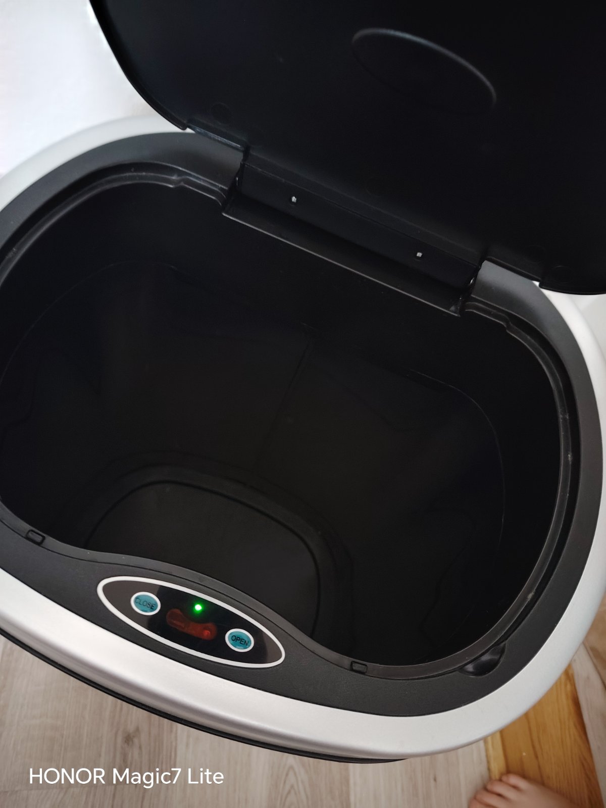 Nerezový odpadkový kôš Helpmation OVAL s rozmermi 35 x 30 x 55 cm a objemom 30 litrov je vybavený infračerveným senzorom. Keď položíte ruku alebo predmet 20 cm nad infračervený snímač, veko sa do niekoľkých sekúnd automaticky otvorí a po vhodení odpadu sa automaticky zatvorí.