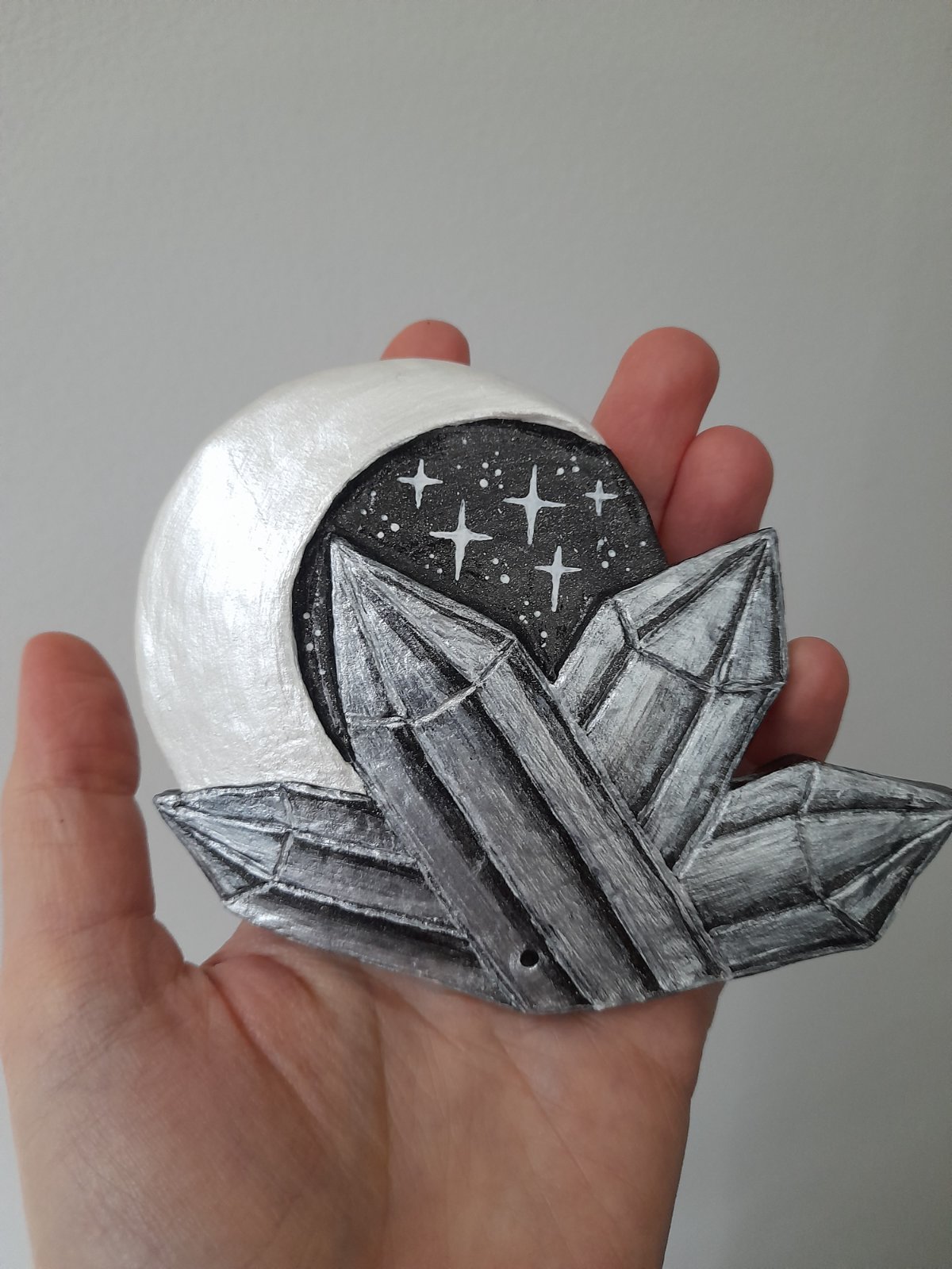Stojan, drziak na vonne tycinky. Handmade. Vyrobeny zo samotvrdnucej hliny, malovany akrylom. Osetreny lakom.
