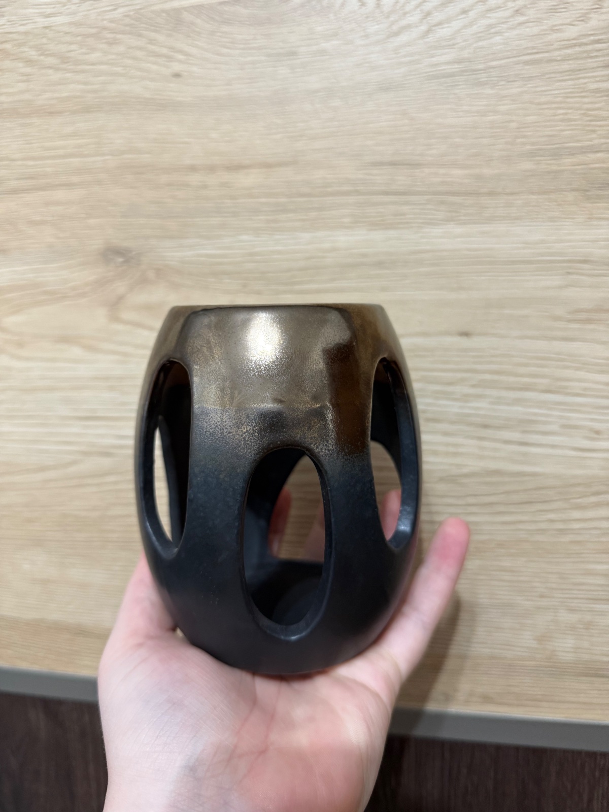 Stojan, drziak na vonne tycinky. Handmade. Vyrobeny zo samotvrdnucej hliny, malovany akrylom. Osetreny lakom. Sluzi ako drziacik, nezachytava vsetok popolcek.