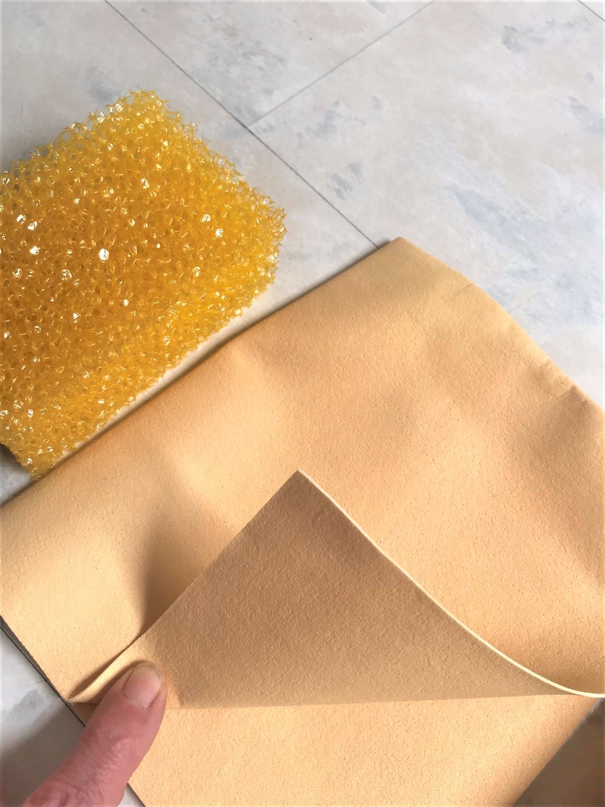 praktický set na umývanie áut,obsahuje špongiu na odstraňovanie hmyzu,jelenicovú špongiu a jelenicu 35 x 35 cm,z celého setu bola použitá iba špongia