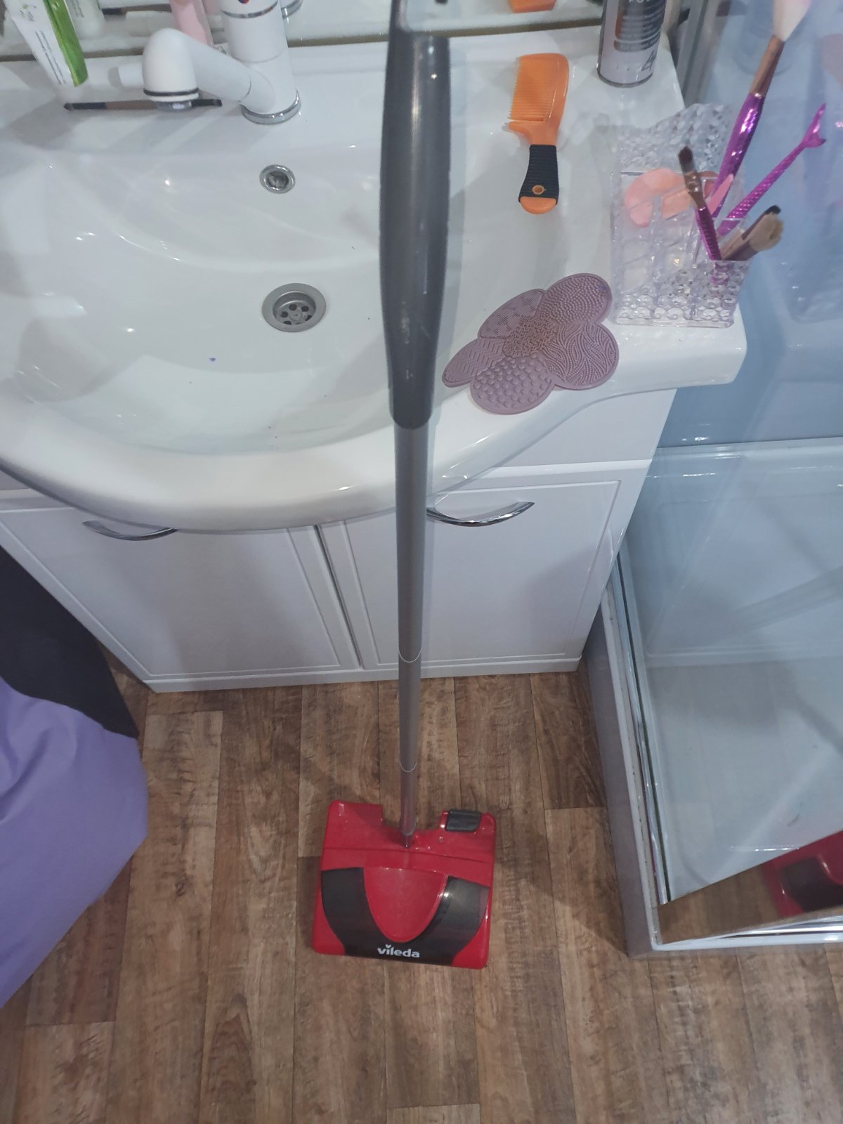 Vileda E-sweeper elektrický zmeták a tiež mop na stieranie prachu. Efektívne a ľahko pozbiera špinu, omrvinky a vlasy z podlahy.