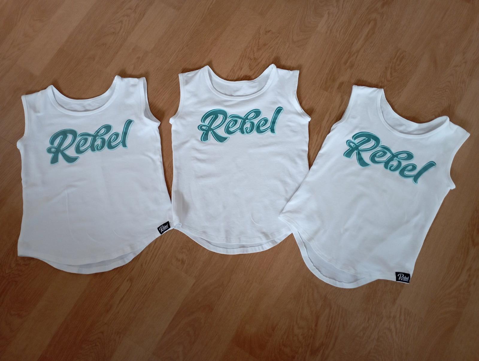 Krásne tielka rebel kids málo nosené veľkosť 2x122 a 1x110 ale výškou na veľkosť 110 všetky,ks