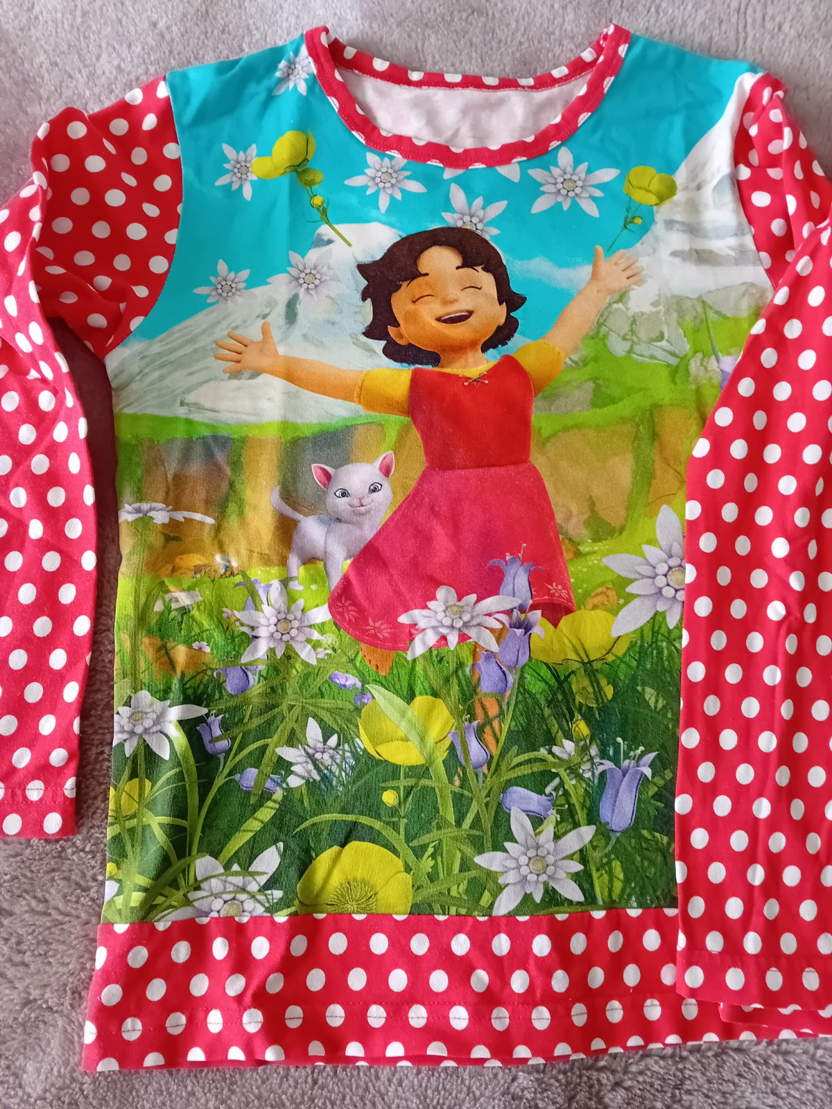 Predám tričká pre dievčatá dvojičky vo veľkosti 140 vo veľmi peknom používanom stave. Tričká sú mnou profesionálne šité z 95% bavlny a 5% polyester. Úplet Heidi som si objednala zo zahraničia.