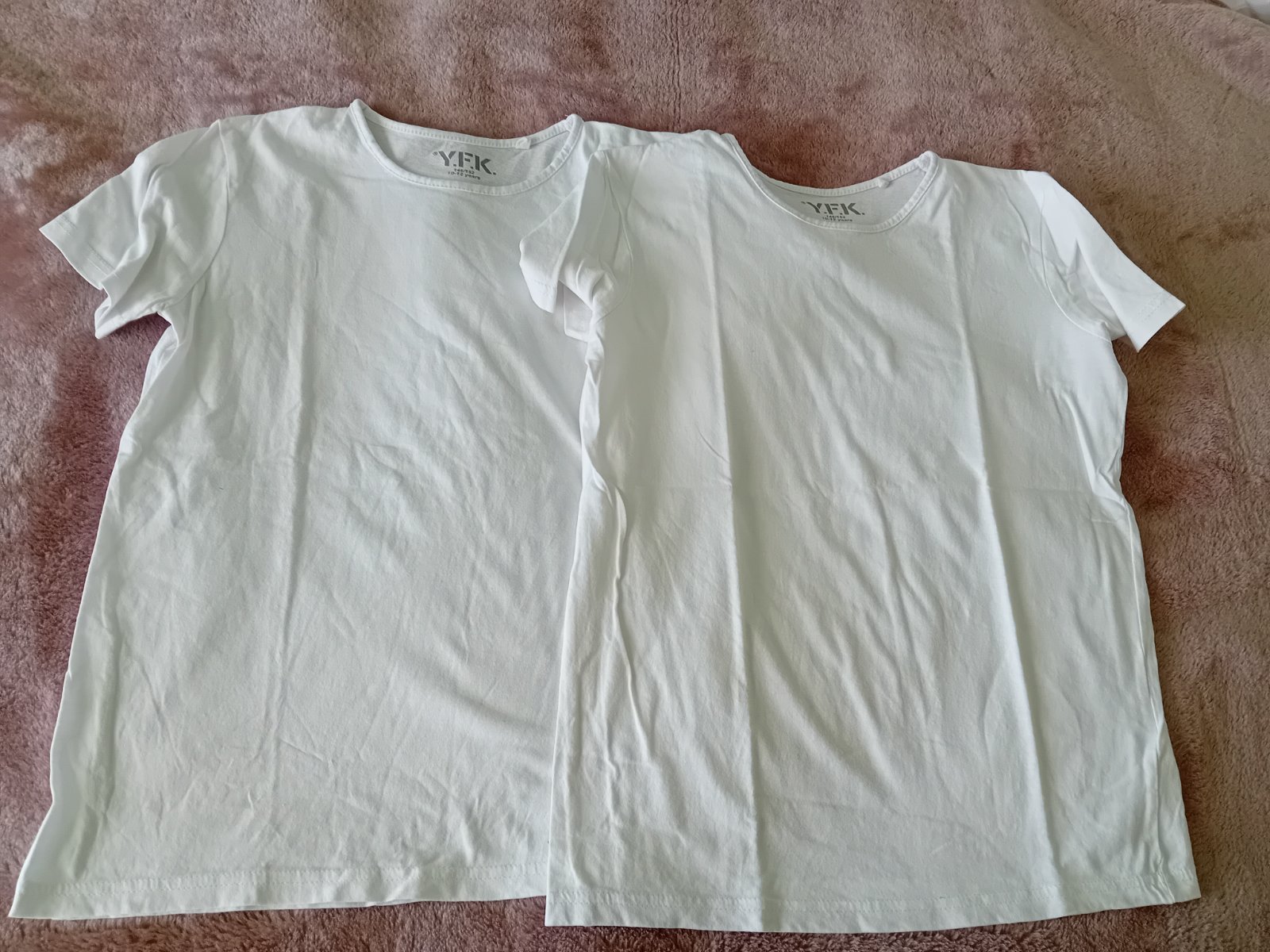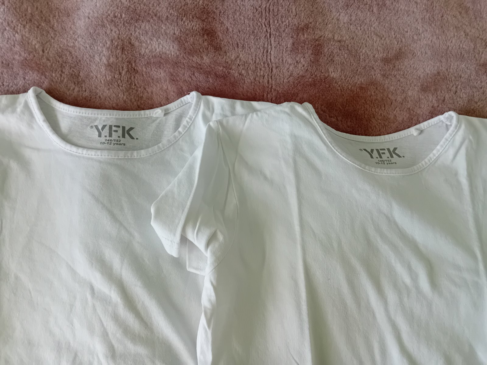 Univerzálne tričká s krátkym rukávom pre dievčatá dvojičky veľkosť 140 bielej farby.