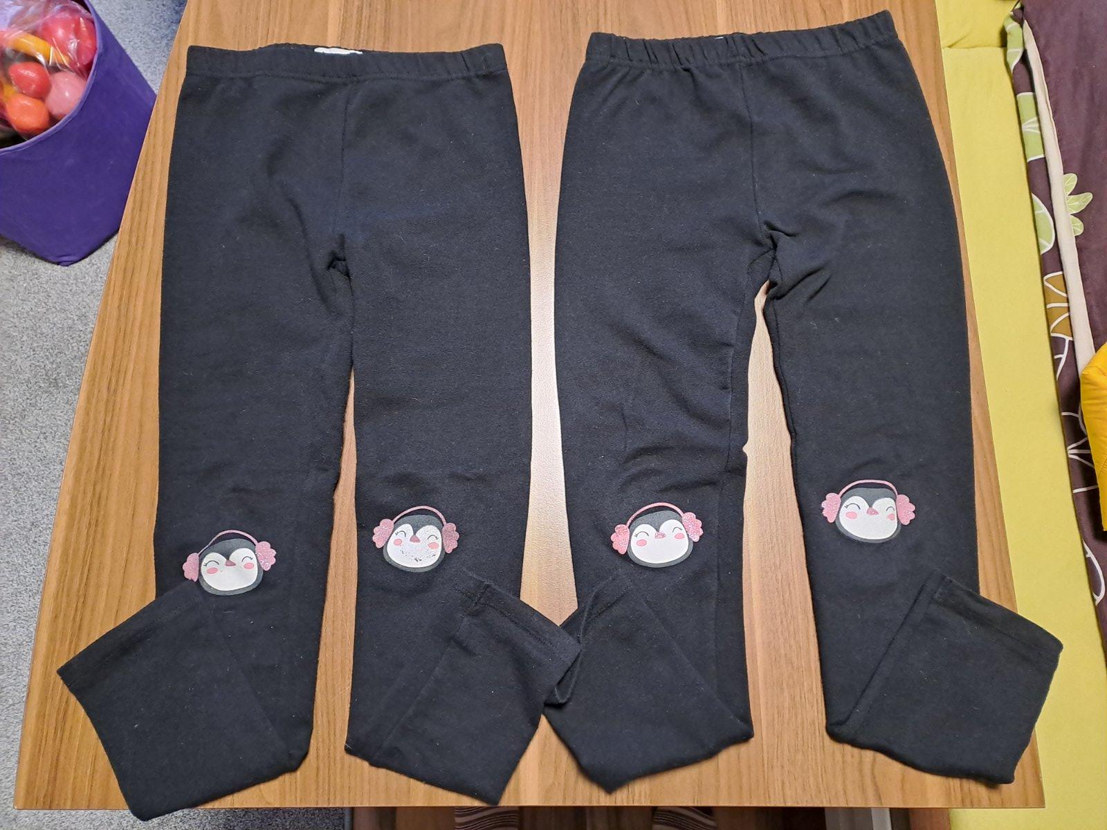 Hrubšie legíny. Velkostne uvádzam menšiu veľkosť, lebo tak sedia, ako 134. Cena spolu.