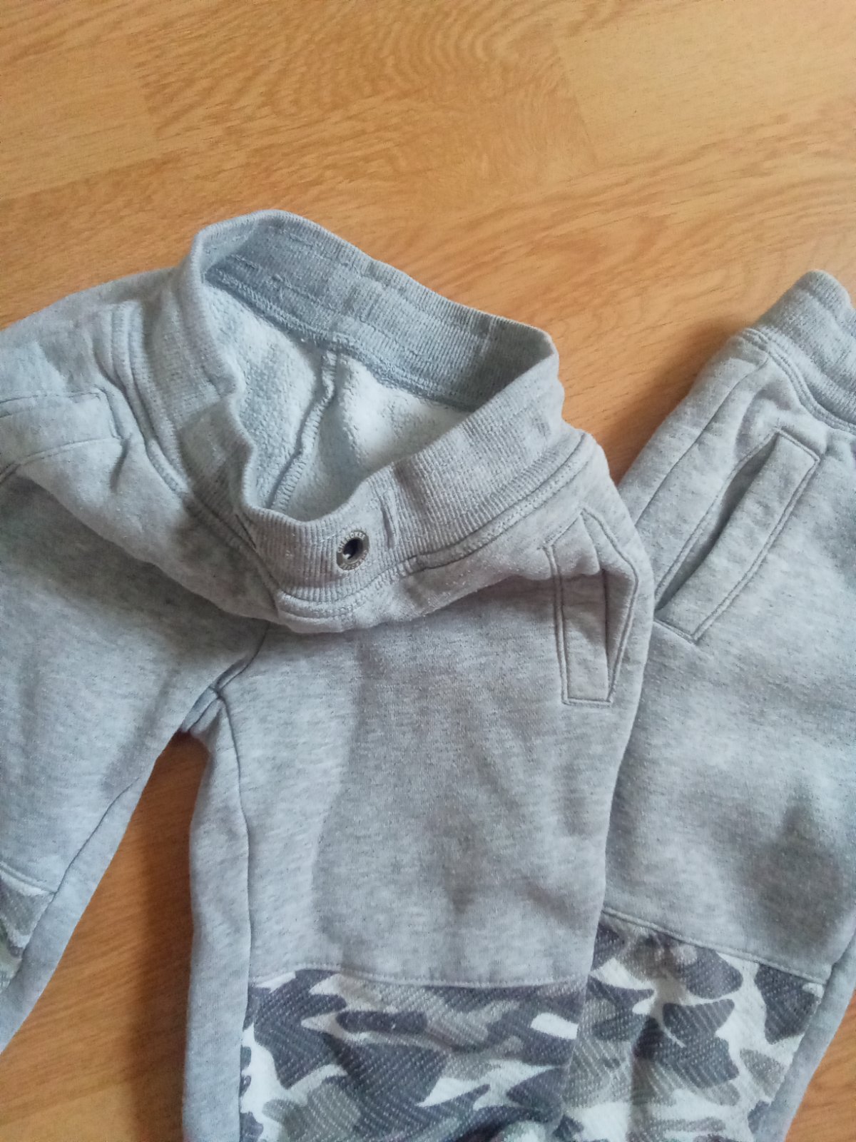 Tepláčiky sú bez poškodenia, alebo sprania. Bez vreciek, v páse guma. Pôvodná veľkosť 6-7 r. : ale u krajčírky sme dávali skracovať. Rozmery: celková dĺžka: 60 cm, vnútorná dĺžka: 42 cm, pás: 48 c...