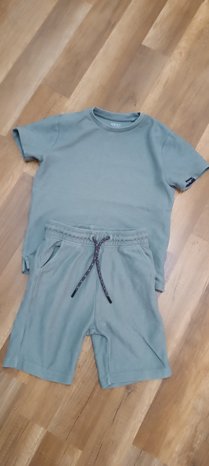 Všetko v super stave. Krásne farby na tričkách. Veľ. píšu 122/128 - ponosíte dlhšie. Tričká majú dĺžku 53 cm, kraťasky 45 cm. Cena za súpravu. Odber spolu!
