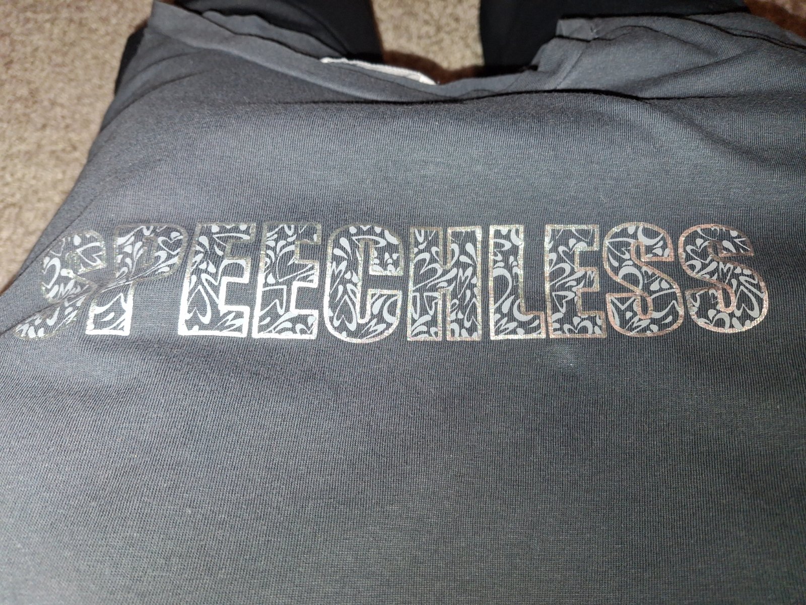Veľkosť xs ale sedí na 152-158 . Kontúry písmen su strieborné aplikácia je v poriadku.Kupované v Gate. Cena spolu.