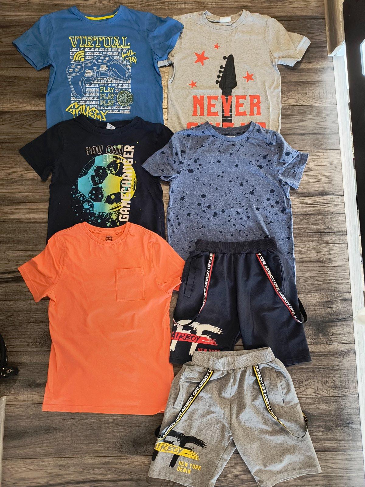 Krátke tričká a kraťasy....cena za 12ks.......19€........na jednom tričku sú 2 mini dierky