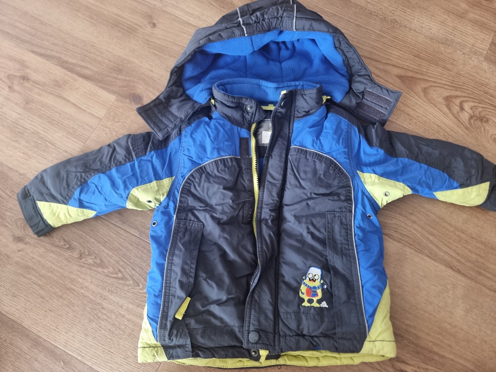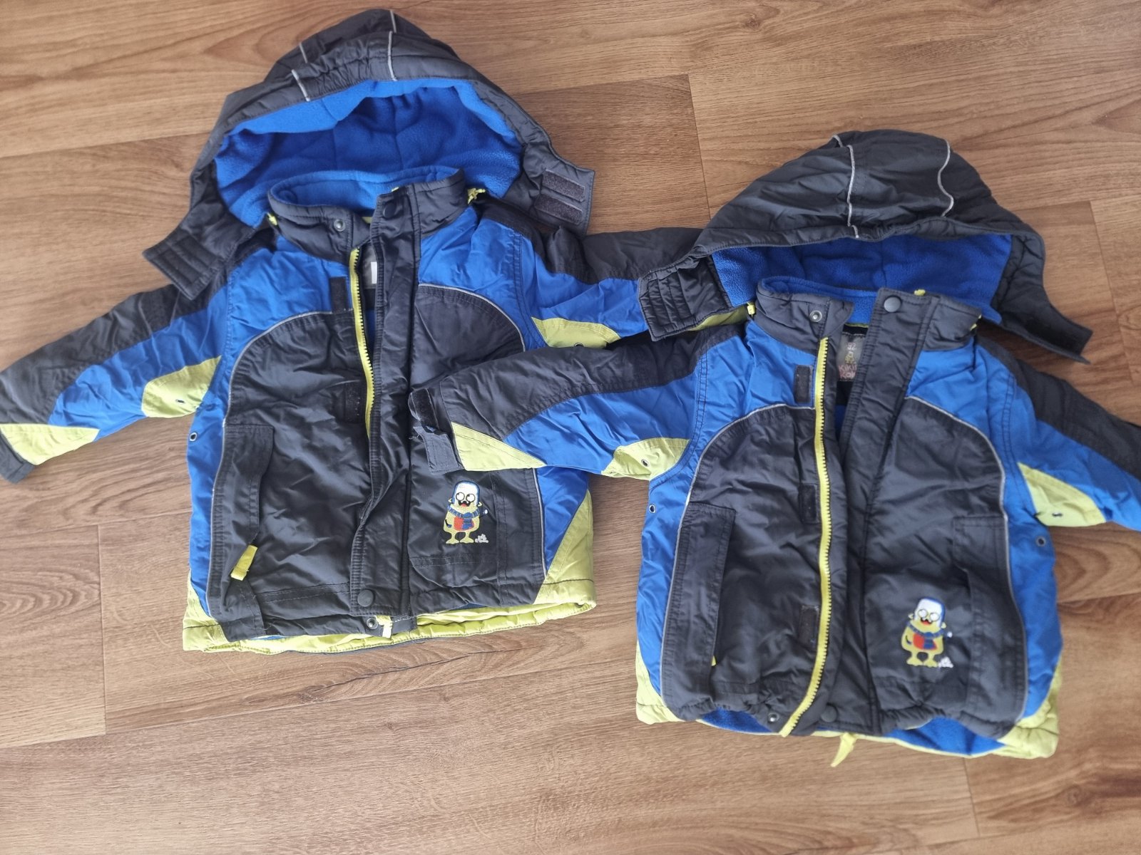 Teplučko zimné bundy, značka Kiki & Koko, veľk. 92, bez poškodení, iba na niektorých miestach jemne ošuchaný reflexný pásik, cena 3,50 € kus, spolu 7 €