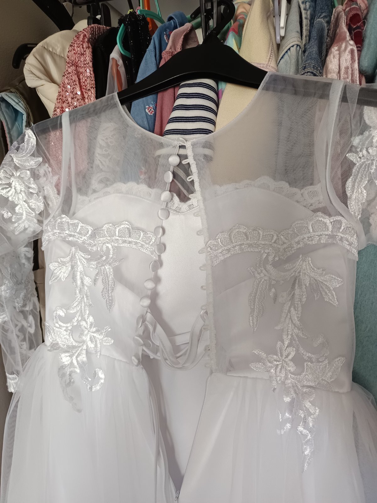 Šaty na 1 sv.príjmanie, veľkosť 140 . Bez poškodení. Cena za obidvoje spolu aj s poštou 30 eur ( čiže pošta grátis) Cena za 1 ks bez pošty 15 eur.